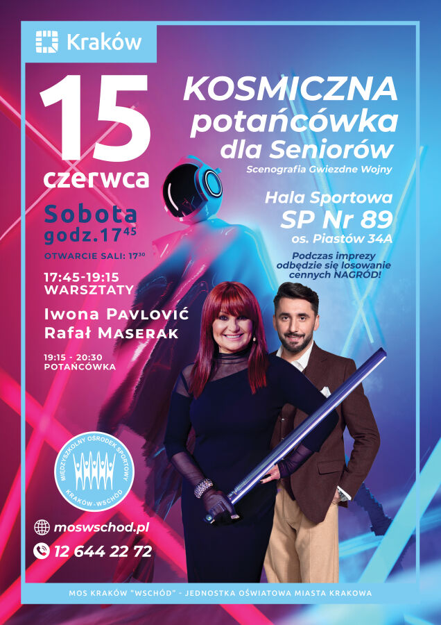 W sobotę, 15 czerwca o godz. 17.30 odbędzie się kolejna edycja potańcówki dla seniorów w hali sportowej Szkoły Podstawowej nr 89 na os. Piastów 34A. Tym razem motywem przewodnim wydarzenia organizowanego przez Międzyszkolny Ośrodek Sportowy Kraków „Wschód” będzie kosmos.