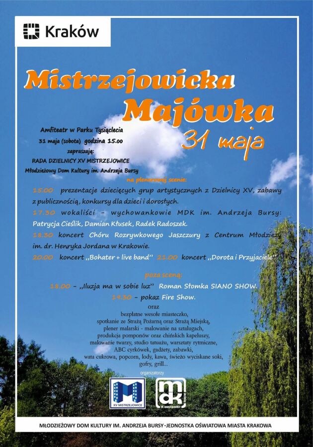 Organizatorami wydarzenia są Rada Dzielnicy XV Mistrzejowice oraz Młodzieżowy Dom Kultury im. Andrzeja Bursy.
