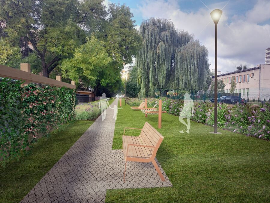 Zielony Zakątek to przestrzeń, która będzie służyć mieszkańcom – do odpoczynku, spacerów i spędzania czasu wśród zieleni. Rozpoczyna się rewitalizacja terenu, która wprowadzi zupełnie nową jakość w tym miejscu. Już niebawem pojawią się tu wygodne ławki, kosze na śmieci, leżaki i hamak – idealne do leniwego relaksu. Powstanie także trejaż, czyli konstrukcja, po której będą wspinać się rośliny – dodając uroku całej przestrzeni i dając przyjemny cień w upalne dni.