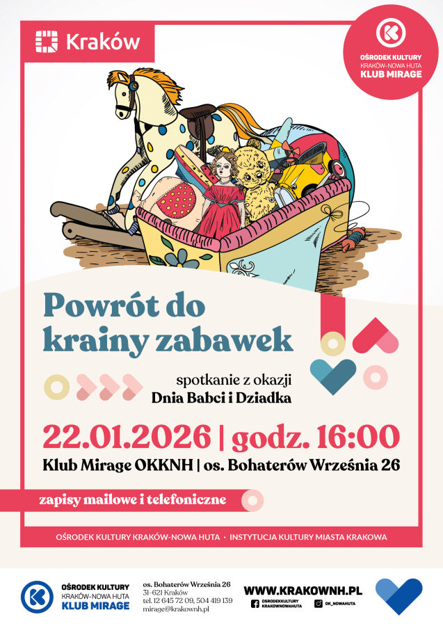 Wydarzenie będzie okazją do wspólnego powrotu do świata dawnych zabawek i beztroskiej zabawy. Na scenie wystąpią dzieci z grupy teatralnej działającej w Klubie Mirage, które w przygotowanym przedstawieniu zaprezentują, jak wiele radości daje wspólne spędzanie czasu i zabawa z dziadkami. W programie przewidziano elementy teatralne, śpiew, taniec oraz aktywne włączanie publiczności.