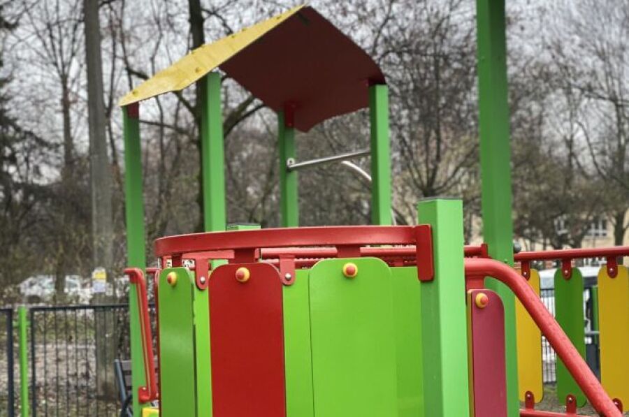W celu zapewnienia większego bezpieczeństwa dzieci, pod urządzeniami pojawiła się nawierzchnia z gumowych mat przerostowych oraz trawy.