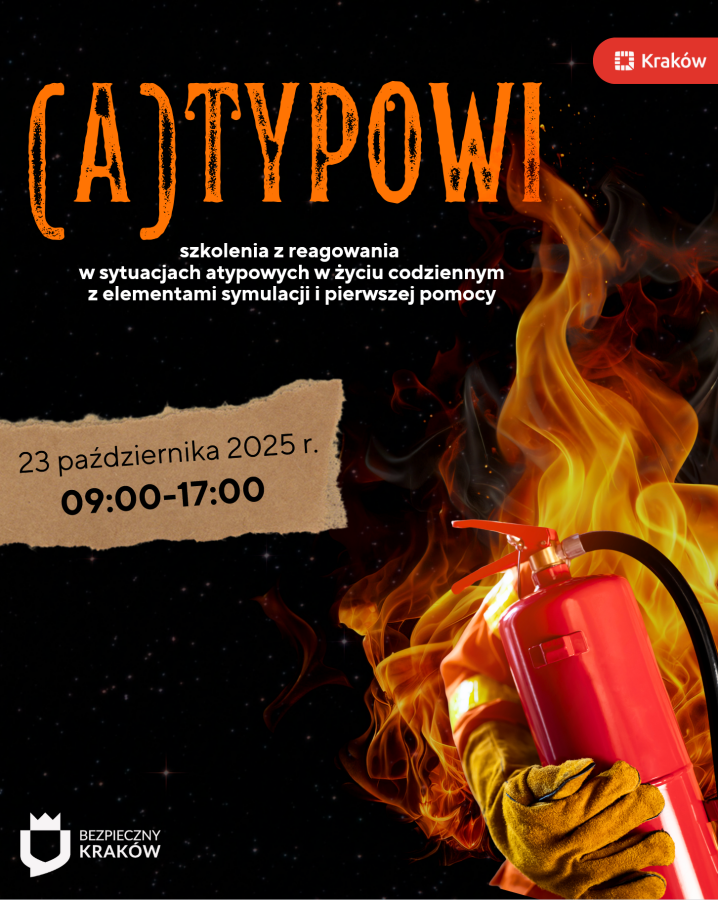 Wydział Bezpieczeństwa i Zarządzania Kryzysowego organizuje bezpłatne ogólnodostępne szkolenie z reagowania w sytuacjach atypowych, z elementami symulacji i pierwszej pomocy pn. „(A)typowi”. Szkolenie odbędzie się dziś, 23 października przy ul. Kaczeńcowej 7 w Hufcu ZHP Kraków – Nowa Huta.