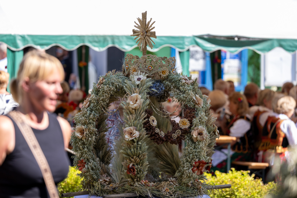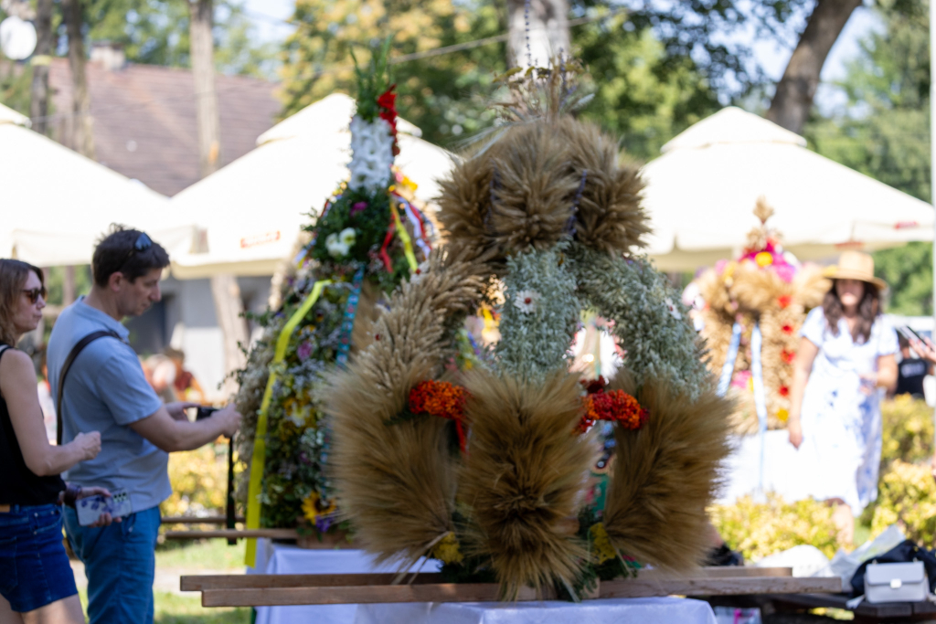 Jak zawsze główną atrakcją obchodów był kolorowy Korowód Dożynkowy. Wzięło w nim udział kilkanaście lokalnych zespołów obrzędowych, z których wiele na co dzień działa przy Klubach Ośrodka Kultury Kraków-Nowa Huta. Po tym nastąpiła najważniejsza część wydarzenia: przegląd i ośpiewanie wieńców dożynkowych. To coś, co naprawdę warto było zobaczyć na własne oczy – misternie wyplatane przez mieszkańców wieńce, ozdobione kłosami, kwiatami i ziołami, zachwycały zarówno różnorodnością form, jak i bogatą symboliką. Wieńce można było podziwiać przez cały czas trwania imprezy.