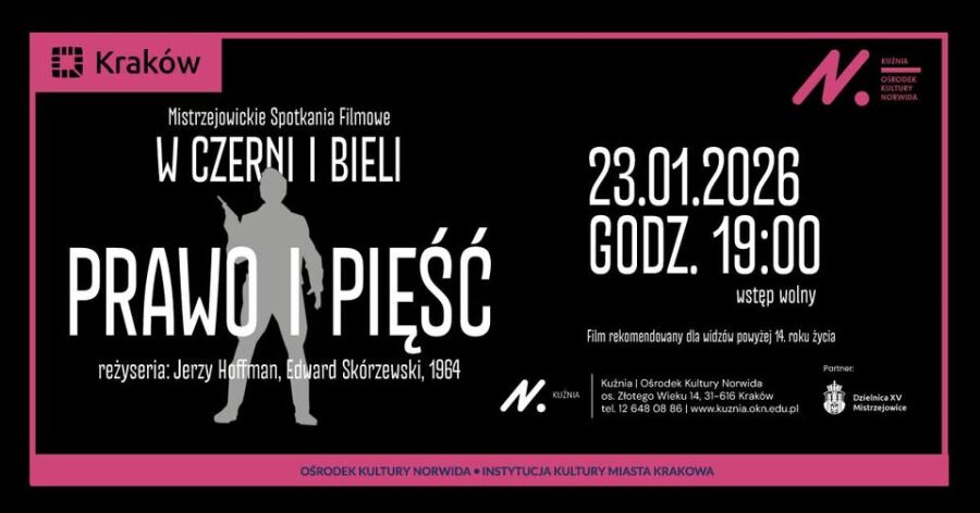 W ramach nowego cyklu „W czerni i bieli” zaprezentowany zostanie film „Prawo i pięść” w reżyserii Jerzego Hoffmana i Edwarda Skórzewskiego. Produkcja z 1964 roku trwa 90 minut i rekomendowana jest dla widzów powyżej 14. roku życia.