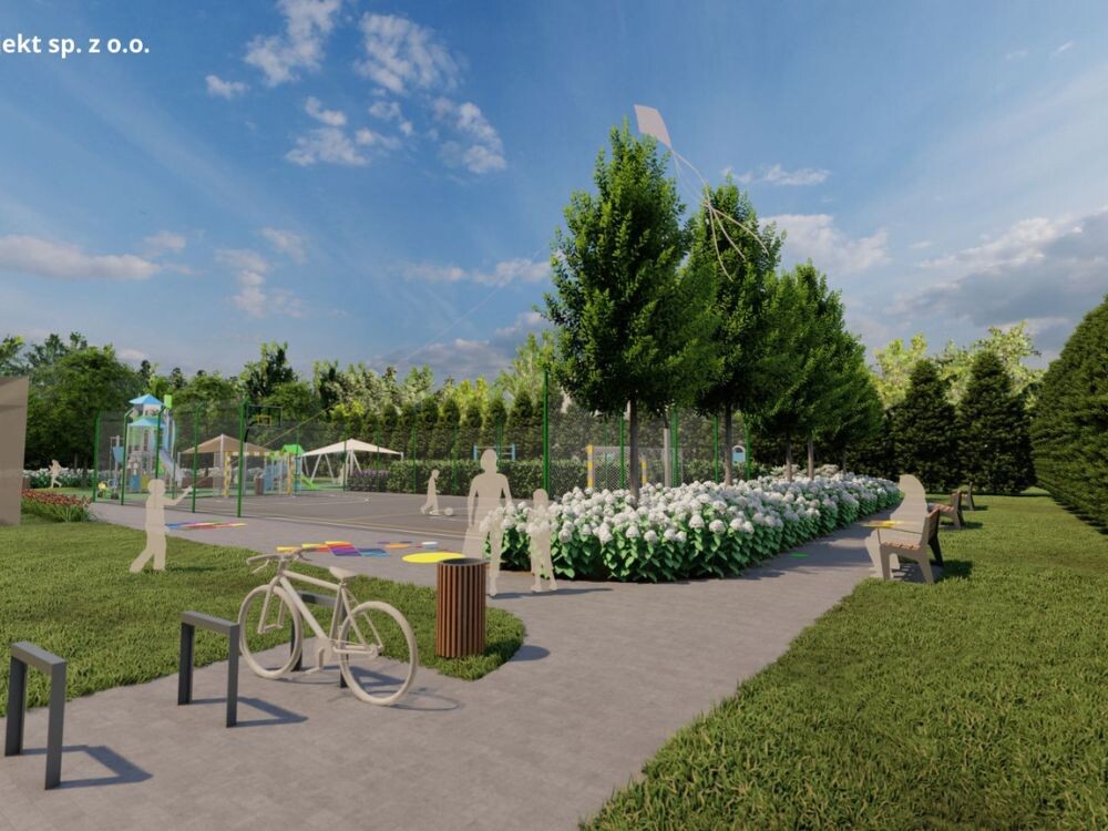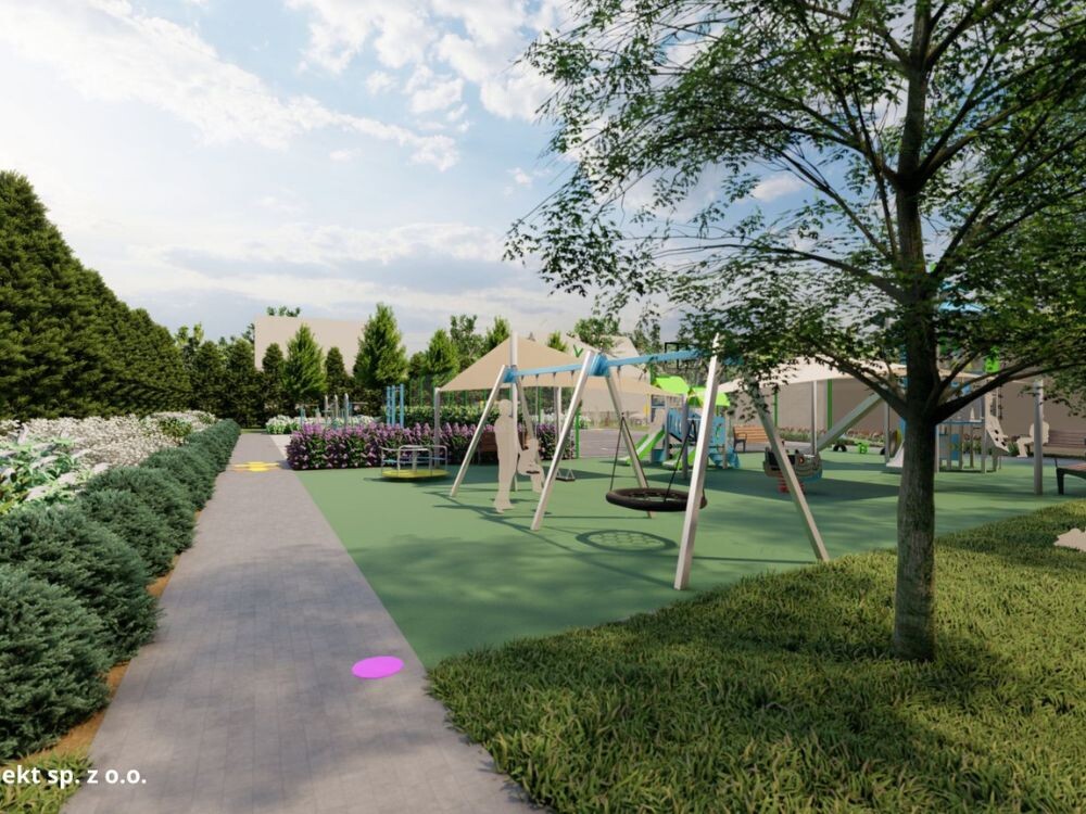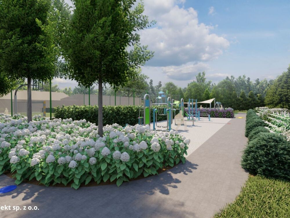 Nie zabraknie atrakcji dla najmłodszych – pojawią się zestawy zabawowe dla dzieci młodszych i starszych, huśtawki (w tym bocianie gniazdo), karuzela, bujaki sprężynowe czy huśtawka wagowa. To przestrzeń, która będzie rozwijać sprawność, wyobraźnię i zachęcać do aktywności. Dorośli i młodzież również znajdą coś dla siebie. Zaplanowano siłownię z urządzeniami takimi jak biegacz, orbitrek, wioślarz, wahadło. Uzupełnieniem będzie strefa street workoutu, idealna do treningu z wykorzystaniem masy własnego ciała. Całość wzbogaci nowoczesne boisko wielofunkcyjne, które umożliwi grę w piłkę nożną, siatkówkę i koszykówkę.
