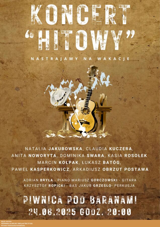 „Koncert Hitowy – nastrajamy na wakacje!” już we wtorek, 24 czerwca, o godz. 20.00, na scenie w Piwnicy pod Baranami. Weź udział w konkursie i wygraj bilety!