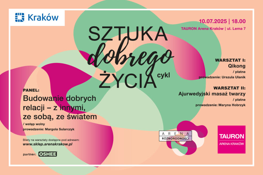 Jak tworzyć autentyczne i żywe relacje? Jak wpływa na nie obecność tu i teraz? Jak na relacje przekładają się nasze doświadczenia? Podczas kolejnej edycji Sztuki Dobrego Życia w TAURON Arenie Kraków porozmawiamy o budowaniu dobrych relacji – z innymi, ze sobą, ze światem. Po panelu odbędą się warsztaty – do wyboru qigong lub warsztat masażu twarzy. Weź udział w naszym konkursie i wygraj bilety na 10 lipca!