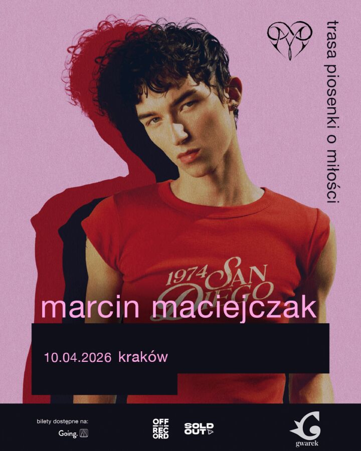 W związku z wydarzeniem mamy dla Was konkurs! Nagrodą jest podwójne zaproszenie. Wystarczy, że odpowiecie na pytanie: który utwór Marcina Maciejczaka chcesz usłyszeć na żywo najbardziej i dlaczego? Odpowiedzi ślijcie na adres: konkurs.mk@um.krakow.pl do poniedziałku, 6 kwietnia, do godz. 20.00. Do zgłoszenia należy dopisać formułę: „Akceptuję regulamin konkursu oraz zapoznałem się z Obowiązkiem Administratora o przetwarzaniu danych osobowych”. W tytule dopiszcie GWAREK2. Laureatów poinformujemy indywidualnie.