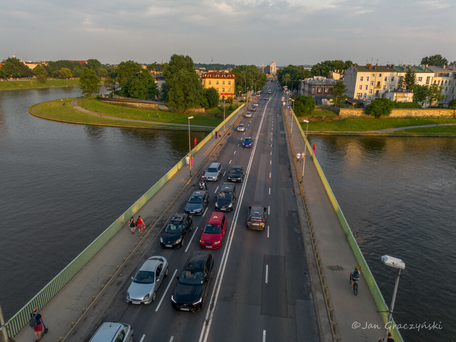 Kolejna interpelacja Łukasza Gibały dotyczy możliwości zastosowania tymczasowego mostu składanego na czas remontu mostu Dębnickiego. - 7 lipca rozpoczął się remont mostu Dębnickiego. Z prowadzonymi pracami wiązała się konieczność zamknięcia dwóch pasów drogowych prowadzących przez most. Tak duże ograniczenie w ruchu drogowym na kluczowym odcinku jednej z najbardziej uczęszczanych tras stało się przyczyną ogromnych korków nie tylko na ulicach bezpośrednio sąsiadujących z remontowanym miejscem, ale i na większym obszarze. Nieustannie powstające zatory są bardzo dokuczliwe przede wszystkim dla mieszkańców podróżujących komunikacją miejską. Jak zgłaszają pasażerowie oraz kierowcy pojazdów, autobusy poruszające się po trasie, na którą wpływają utrudnienia związane z pracami na moście Dębnickim, notują bardzo duże opóźnienia, sięgające nawet kilkudziesięciu minut. Te informacje znajdują potwierdzenie w oficjalnych komunikatach Miejskiego Przedsiębiorstwa Komunikacyjnego, dotyczących opóźnień autobusów przejeżdżających przez rondo Grunwaldzkie. W obliczu tak dużych utrudnień oczywista wydaje się potrzeba szukania wszelkich rozwiązań, które mogłyby choć w części zmniejszyć negatywne efekty trwającego remontu. Należy pamiętać, że prace budowlane na moście Dębnickim mają trwać także po zakończeniu wakacji, kiedy ruch drogowy, jak można łatwo przewidzieć, jeszcze się nasili. Mieszkańcy obawiają się dalszego zwiększenia utrudnień w tym okresie i proszą o podjęcie działań w celu upłynnienia ruchu drogowego. W 1998 r. most Dębnicki poddano generalnemu remontowi, podczas którego był on całkowicie wyłączony z użytkowania. Ruch drogowy przeniesiono wówczas na składany most wojskowy Lajkonik, który zdemontowano po zakończeniu prac, a następnie tymczasowo postawiono w rejonie Zabłocia w celu odciążenia ruchu samochodowego na moście Powstańców Śląskich. Wielu mieszkańców apeluje, by na czas obecnie prowadzonych prac na moście Dębnickim ponownie zastosować wspomniane rozwiązanie – apeluje radny. Dopytuje także, czy rozważano możliwość zastosowania na czas remontu mostu Dębnickiego tymczasowego mostu składanego w celu zminimalizowania utrudnień w ruchu drogowym? Jeśli odpowiedź na powyższe pytanie jest twierdząca – dlaczego nie zdecydowano się na takie rozwiązanie? Czy aktualnie, w świetle trwających i przewidywanych w kolejnych miesiącach utrudnień, istnieje możliwość zastosowania powyższego rozwiązania?