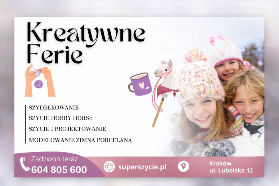 Ferie zimowe pełne twórczych wyzwań i dobrej zabawy? Podczas warsztatów DIY w Crea School – Centrum Edukacji Kreatywnej dzieci poznają tajniki szydełkowania, szycia ręcznego, robienia na drutach, modelowania zimną porcelaną, a w przerwach zrelaksują się przy grach planszowych.
