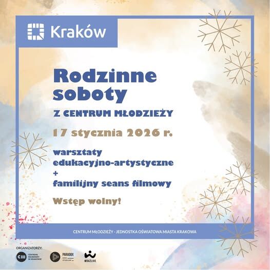 Już 17 stycznia powracają „Rodzinne soboty” – propozycja wspólnego, twórczego spędzania czasu dla dzieci i opiekunów w Centrum Młodzieży im. H. Jordana. W programie znalazły się warsztaty edukacyjno-artystyczne oraz familijny seans filmowy w Kinie Studyjnym Paradox. Wstęp na wydarzenie jest bezpłatny.
