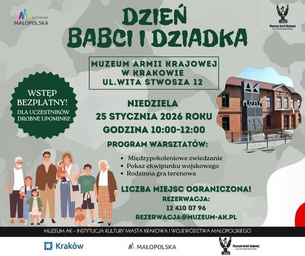 Z okazji Dnia Babci i Dnia Dziadka Muzeum Armii Krajowej organizuje w niedzielę, 25 stycznia specjalne wydarzenie skierowane do seniorów oraz ich wnuków. Zajęcia rozpoczną się o godzinie 10.00 i potrwają do godziny 12.00.