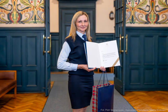 Jej znakomitą postawę docenił Prezydent Aleksander Miszalski, który z uznaniem wysłuchał relacji o akcji ratunkowej oraz wręczył Pani Monice list gratulacyjny i upominek. Gratulacje i wyrazy uznania przekazał jej także Rafał Świerczyński, Prezes Zarządu MPK w Krakowie.