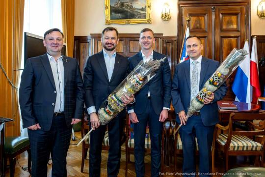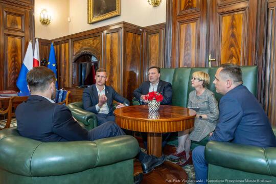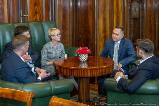 Prezydent Miasta Krakowa Aleksander Miszalski oraz Przewodniczący Rady Miasta Jakub Kosek spotkali się z delegacją Rejonu Wileńskiego pod przewodnictwem Mera Roberta Duchniewicza.