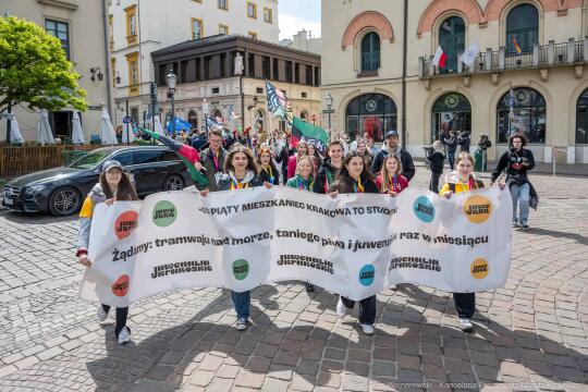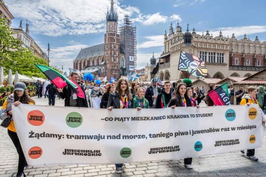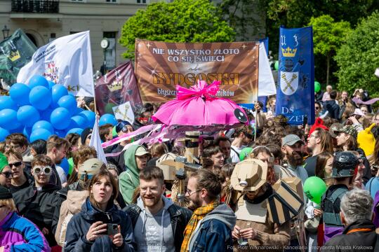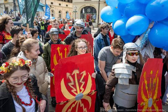 Od tradycyjnego przemarszu wokół krakowskiego Rynku rozpoczęły się uroczystości Krakowskich Juwenaliów na Placu Szczepańskim. To studenckie święto, które obchodzimy najdłużej w Polsce, bo już od XV wieku. Za rok będziemy świętować równe 70 lat od pierwszych nowożytnych obchodów Juwenaliów, które w latach 50. XX wieku stały się wzorem dla innych miast akademickich.