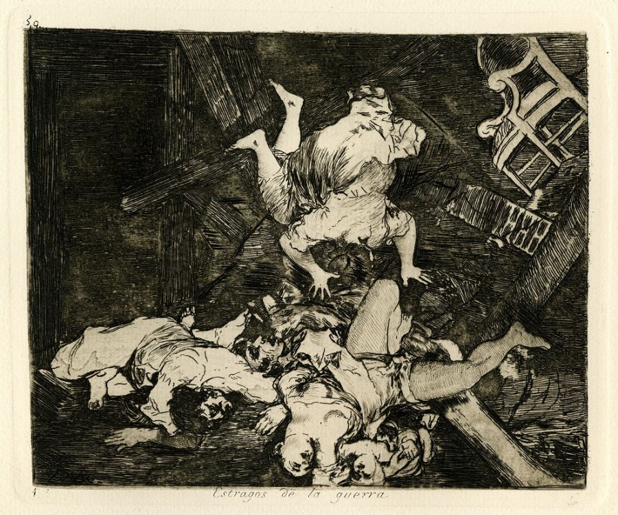 82 grafiki z cyklu Okropności wojny, na których Francisco Goya uchwycił okrucieństwa hiszpańskiej wojny o niepodległość przeciwko wojskom napoleońskim (1808-1814) uzupełnione zostały fotografiami wojennymi (między innymi z hiszpańskiej wojny domowej 1936-1939) tworząc niezwykle mocno oddziałującą ekspozycję. Wystawę wzbogacono dodatkowo o filmy wideo, w których zestawienie grafik artysty z fotografiami dodatkowo wzmacnia ten przekaz. Całość pozwala uznać Goyę za prekursora w dziedzinie fotoreportażu wojennego.