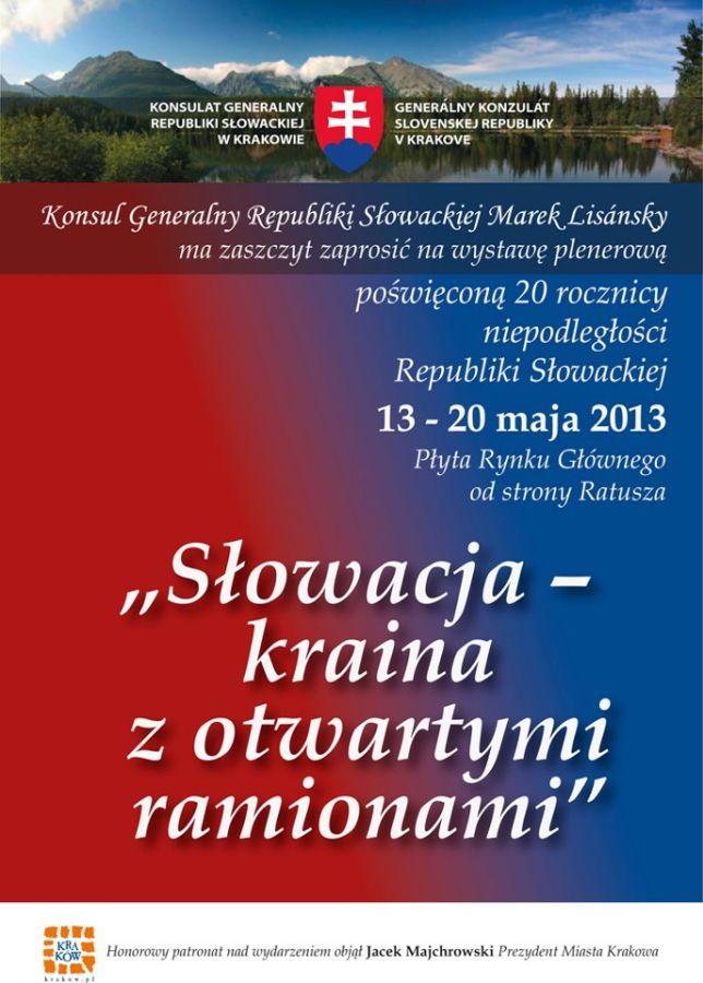 Słowacja – kraina z otwartymi ramionami – to tytuł wystawy, którą przez tydzień (od poniedziałku – 13 maja do poniedziałku – 20 maja) można oglądać na Rynku Głównym w Krakowie (obok Wieży Ratuszowej).