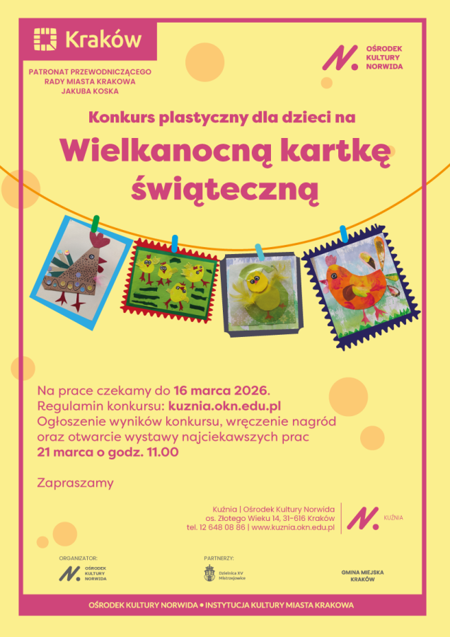 Przewodniczący Rady Miasta Krakowa Jakub Kosek, objął patronatem konkurs plastyczny na wielkanocną kartkę świąteczną, organizowany przez Ośrodek Kultury im. Cypriana Kamila Norwida.