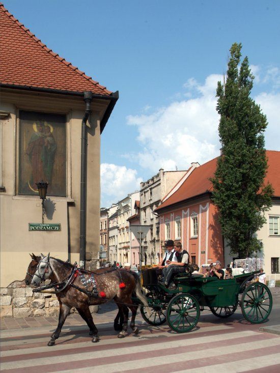 Dawniej użyteczne, jako praktycznie jedyny środek transportu w mieście, obecnie, głównie dzięki Konstantemu Ildefonsowi Gałczyńskiemu i jego "Zaczarowanej dorożce", traktowane jako element lokalnego folkloru i kolejna ciekawostka związana z miastem. Pojawiły się w XIX wieku. Początkowo dwukonne, od 1857 roku zmieniły się w ramach oszczędności w tak zwane jednokonne, kryte "cypcerówki" (od nazwiska Józefa Cypcera - właściciela przedsiębiorstwa przewozowego) albo też w zwykłe fiakry. Kurs kosztował wówczas 20 krajcarów za milę, a poza rogatkami miejskimi cena wzrastała do 50 krajcarów. Do tego dochodziły również dodatkowe opłaty za taryfę nocną. Ich główny postój znajdował się pomiędzy Kościołem Mariackim a Sukiennicami, kolejne natomiast przy Dworcu Głównym i na Placu Szczepańskim. W związku z rozwojem linii dorożkarskich Rada Miasta wydała w latach 1855-1873, obowiązujące wszystkich kierujących pojazdami konnymi, przepisy drogowe zabraniające między innymi wyścigów po ulicach miasta i prowadzenia w stanie nietrzeźwym...