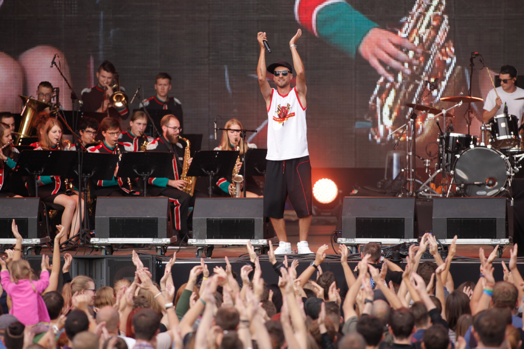 Następnie scenę wypełnili (dosłownie!) L.U.C i Jan Feat., którzy dali porywający koncert grając z największym w Europie hip-hopowo-brassowym kolektywem REBEL BABEL ENSEMBLE. Hip-hop połączony z żywiołowym brzmieniem instrumentów dętych zrobił na zgromadzonych wielkie wrażenie.