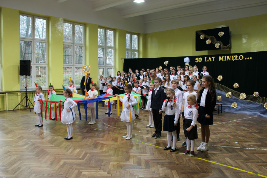 „Są miejsca, czasy i ludzie, których się nie zapomina” – pod takim hasłem społeczność szkolna zorganizowała dwudniowe obchody jubileuszu. Wczoraj odbyła się uroczysta akademia, a w szkolnych ogrodach zakopano kapsułę czasu. Dzisiaj miała miejsce część oficjalna, z udziałem władz miasta. Uczniowie przygotowali na tę okazję część artystyczną pt. „Pięćdziesiąt lat minęło…”.
