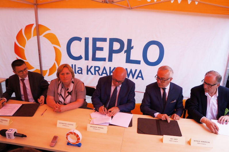 Przedstawiciele Spółdzielni Mieszkaniowej „Bieńczyce”, MPEC Kraków i EDF Polska oddział nr 1 w Krakowie podpisali w poniedziałek kompleksową umowę dotyczącą realizacji programu „Ciepła woda bez piecyka” w blokach spółdzielni, w których mieszka prawie 14 tys. osób.