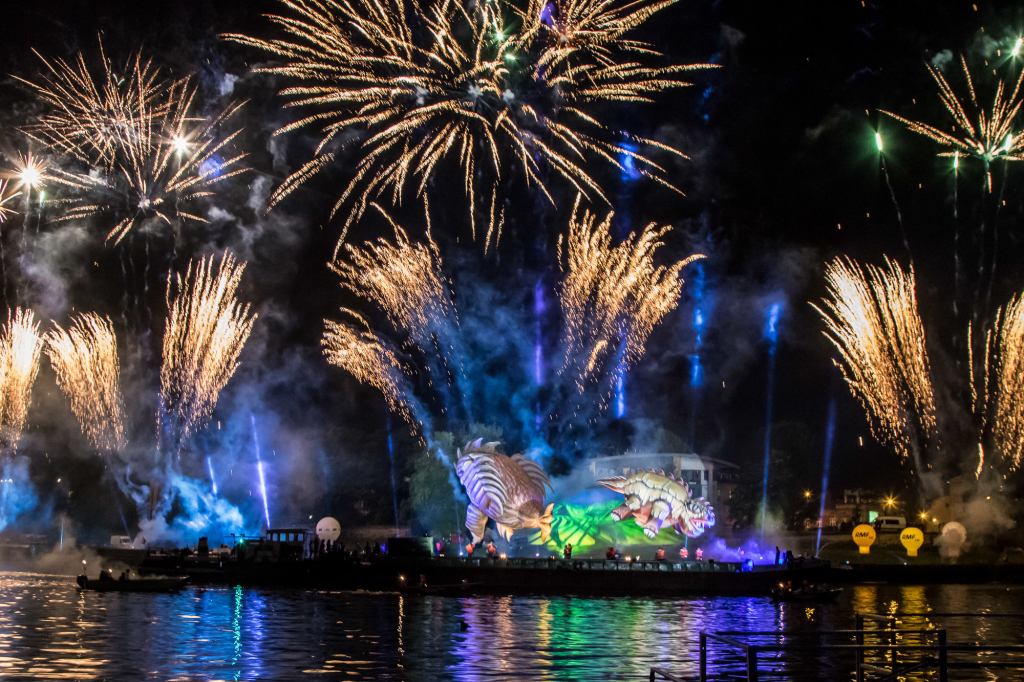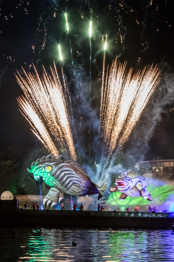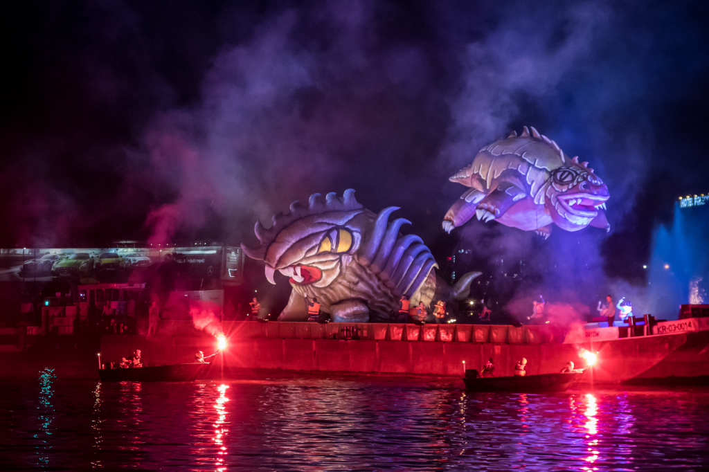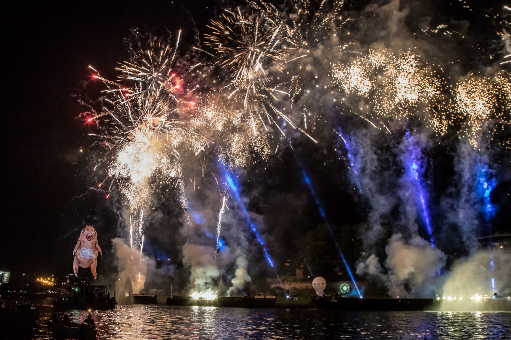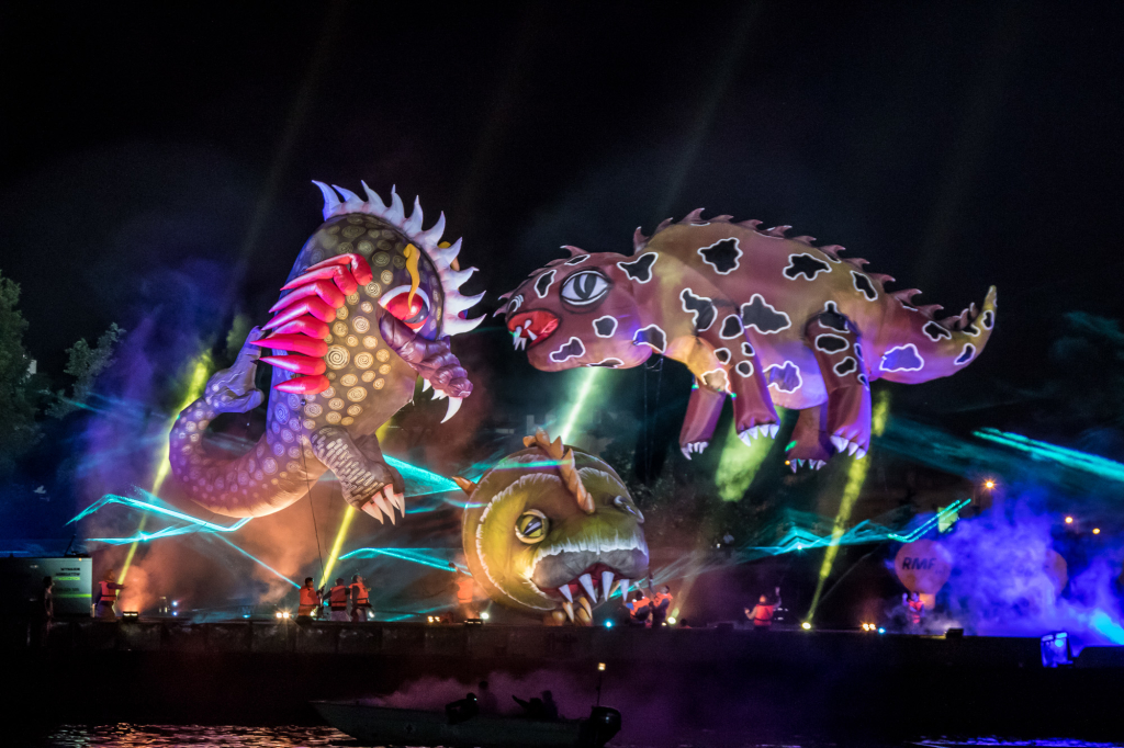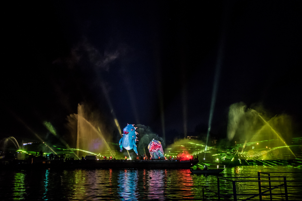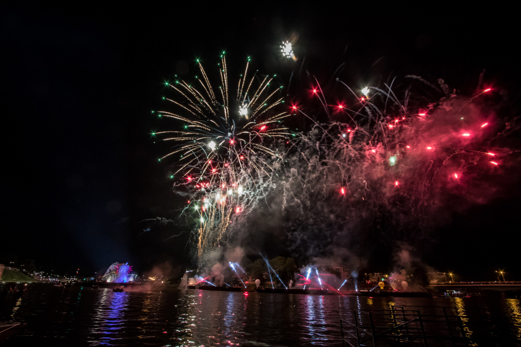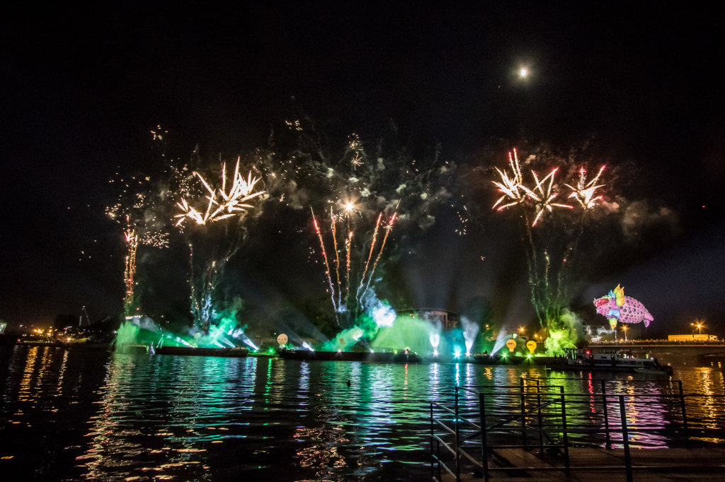 W sobotę o godz. 22 przy Zakolu Wisły pod Wawelem odbyło się niezapomniane widowisko z wykorzystaniem efektów pirotechnicznych, zaskakującej oprawy świetlnej i laserowej oraz gigantycznych kurtyn wodnych, a także pięknej muzyki. Największą atrakcją były ogromne latające smoki, animowane na barkach i statkach przez aktorów Teatru Groteska. Z głośników popłynęła muzyka m.in. Maurice’a Ravela, Gorana Bregovica czy Hansa Zimmera. Podniebną prezentację smoków poprzedził pokaz lotniarzy oraz flyboard na Wiśle.