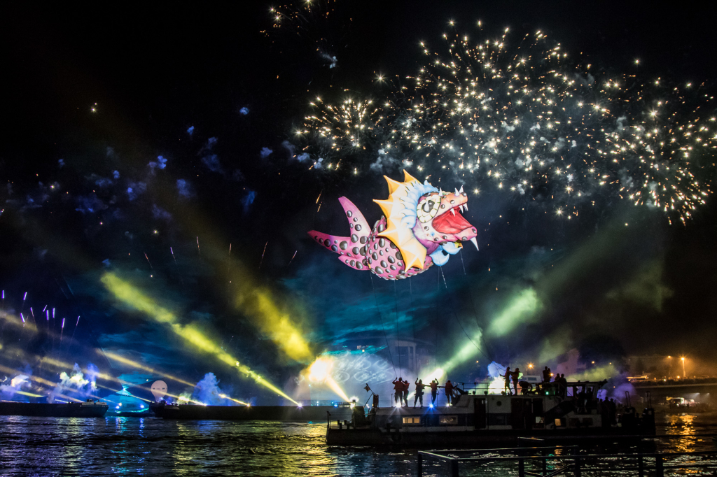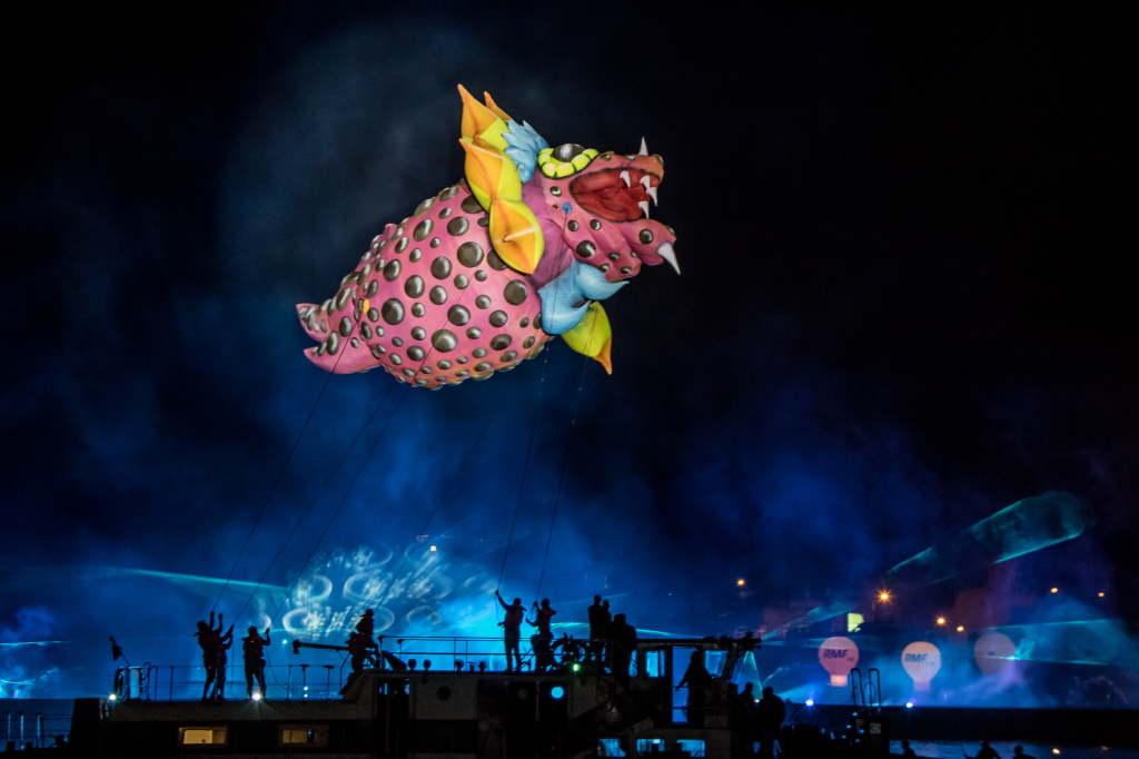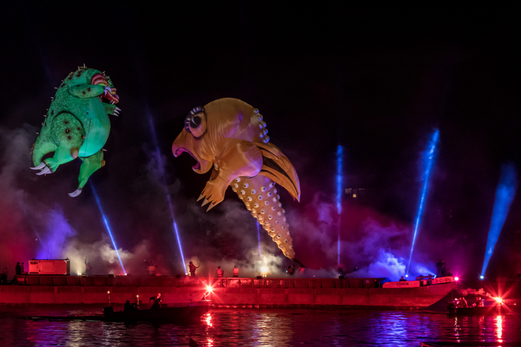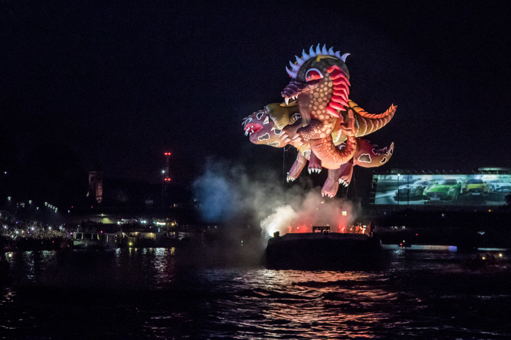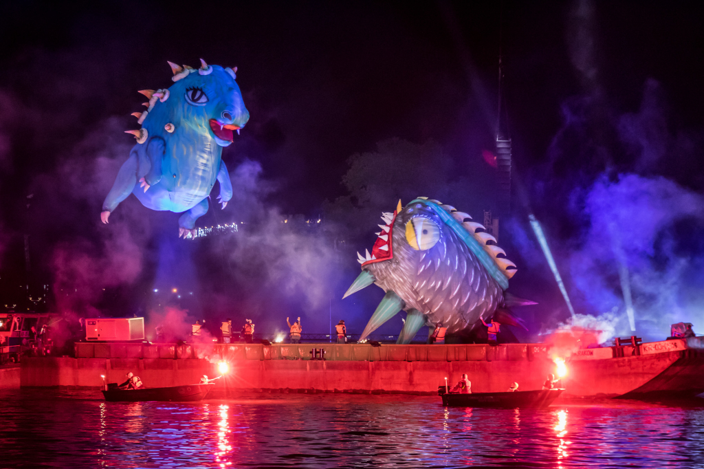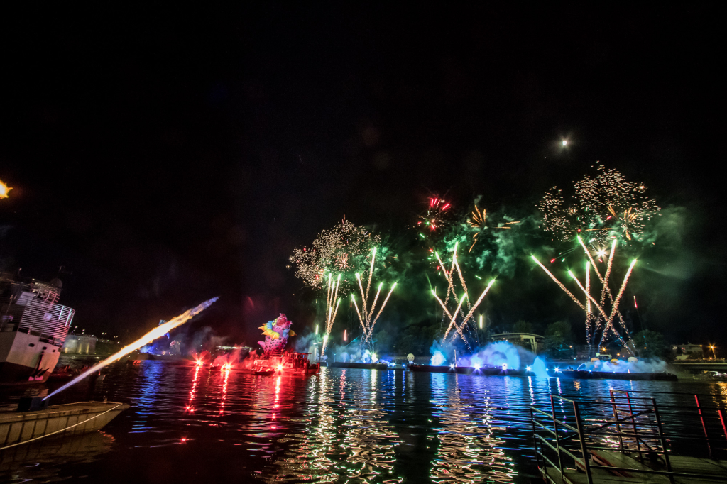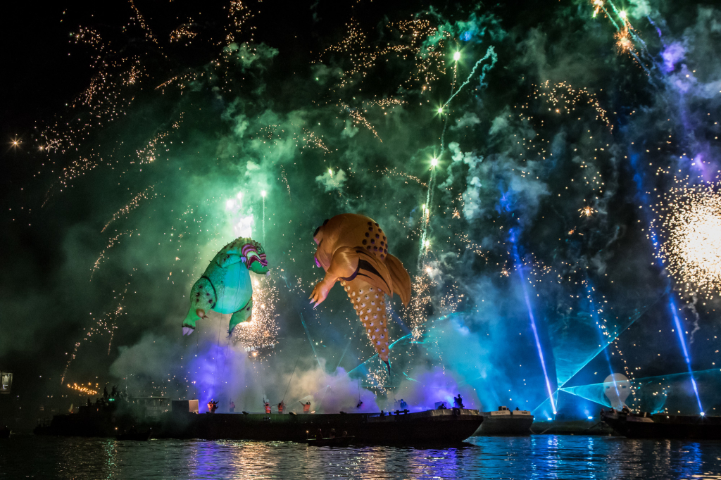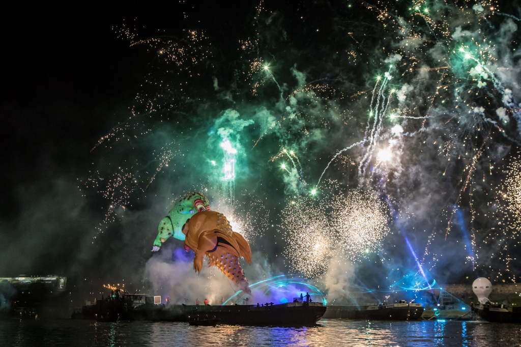 W sobotę o godz. 22 przy Zakolu Wisły pod Wawelem odbyło się niezapomniane widowisko z wykorzystaniem efektów pirotechnicznych, zaskakującej oprawy świetlnej i laserowej oraz gigantycznych kurtyn wodnych, a także pięknej muzyki. Największą atrakcją były ogromne latające smoki, animowane na barkach i statkach przez aktorów Teatru Groteska. Z głośników popłynęła muzyka m.in. Maurice’a Ravela, Gorana Bregovica czy Hansa Zimmera. Podniebną prezentację smoków poprzedził pokaz lotniarzy oraz flyboard na Wiśle.