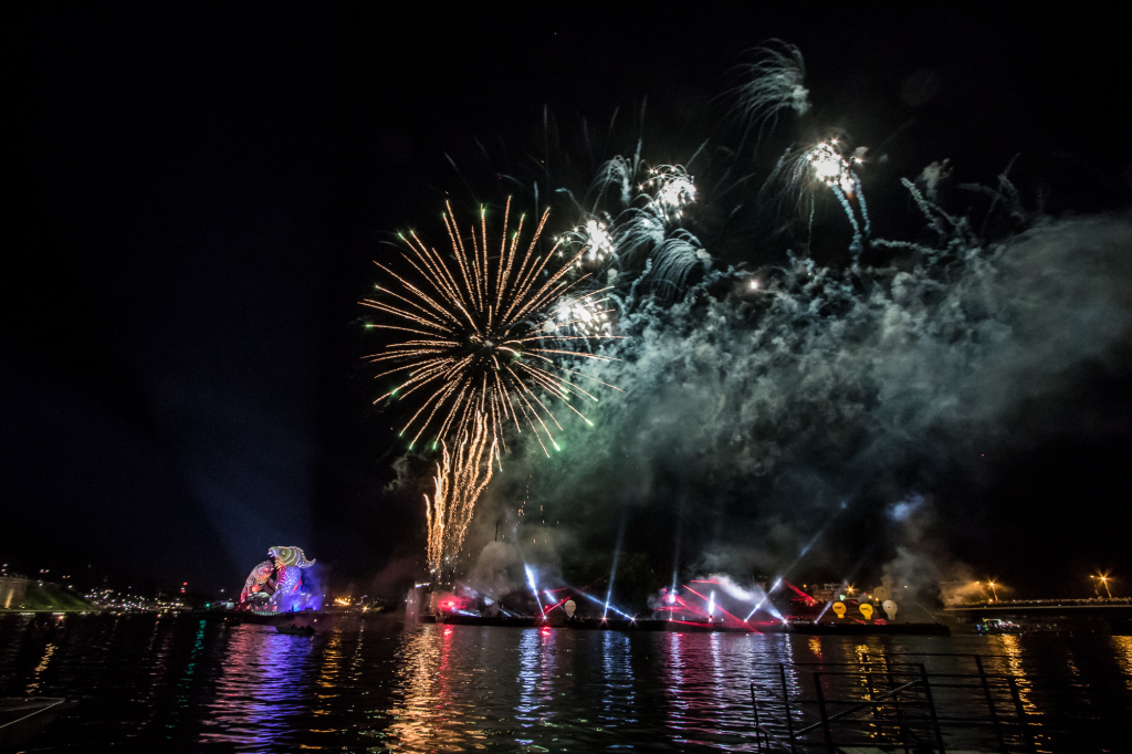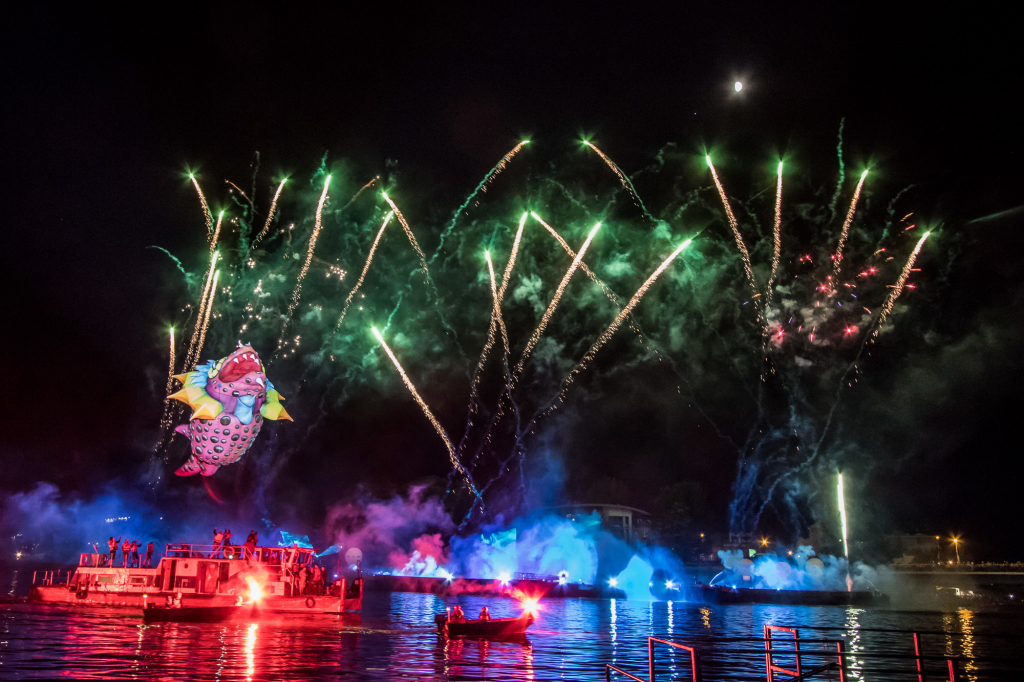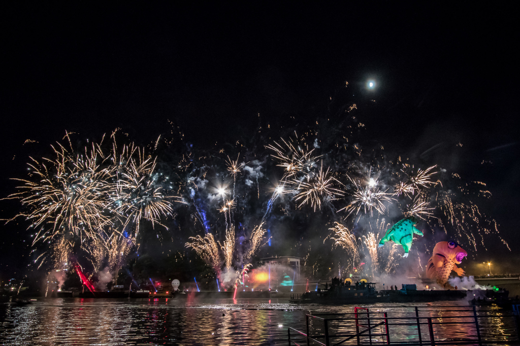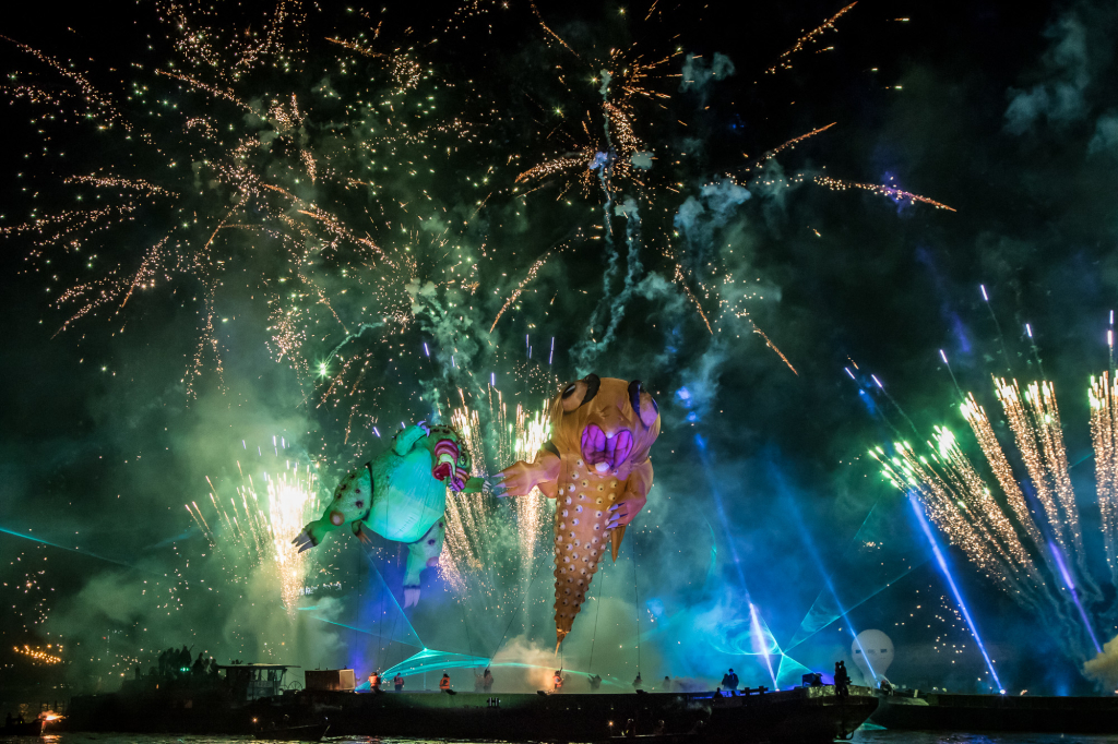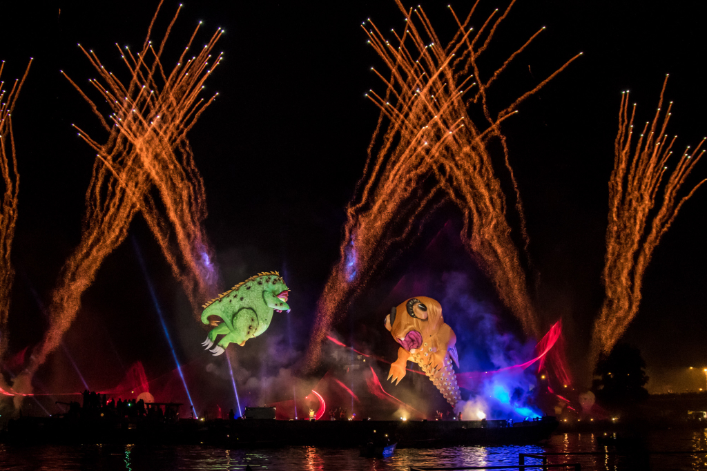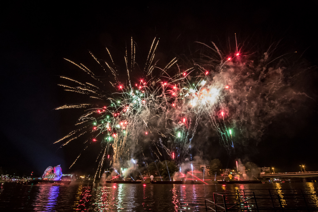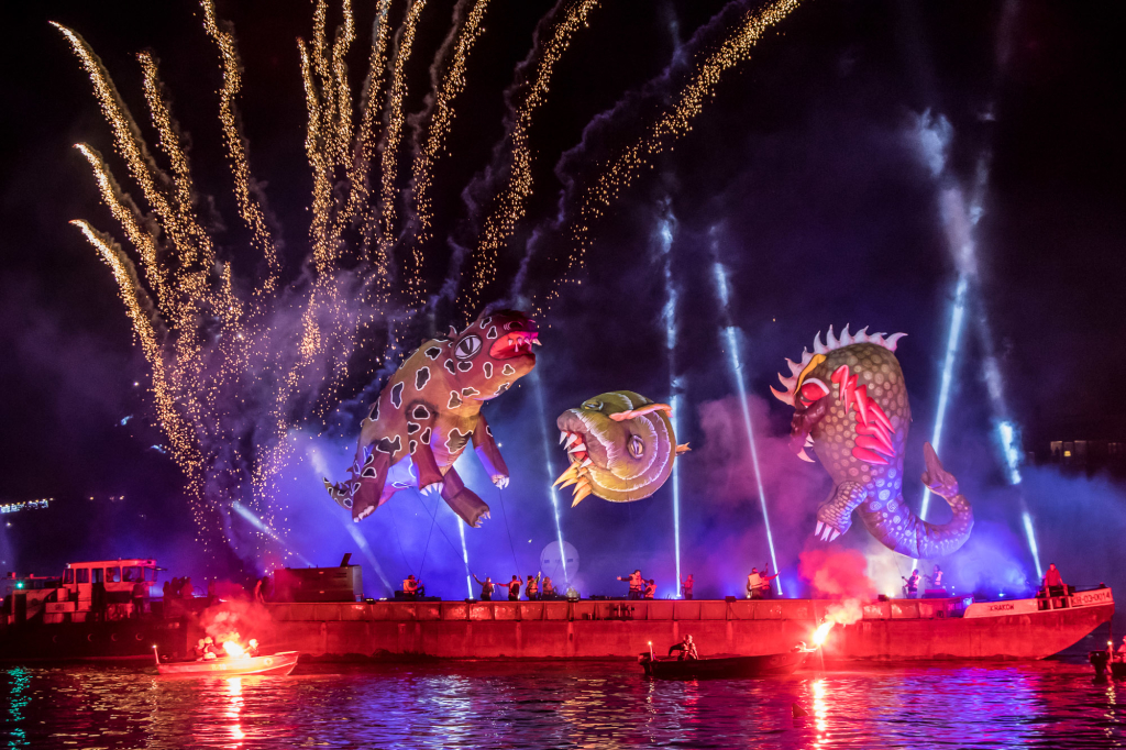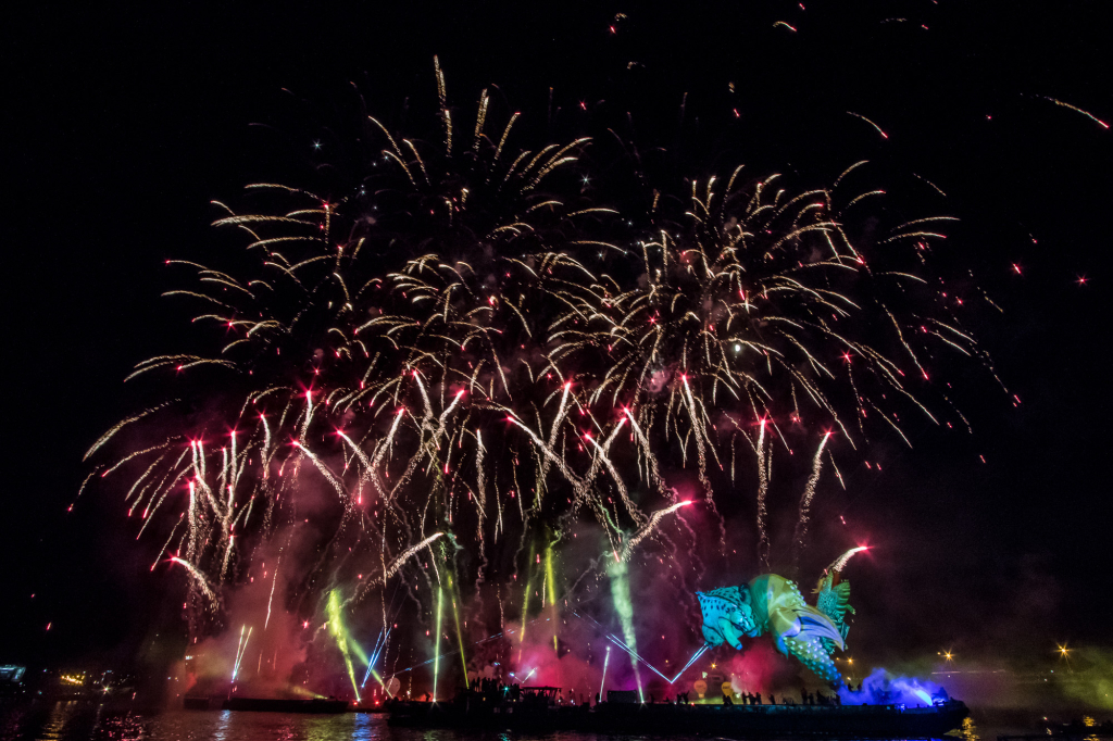 W sobotę o godz. 22 przy Zakolu Wisły pod Wawelem odbyło się niezapomniane widowisko z wykorzystaniem efektów pirotechnicznych, zaskakującej oprawy świetlnej i laserowej oraz gigantycznych kurtyn wodnych, a także pięknej muzyki. Największą atrakcją były ogromne latające smoki, animowane na barkach i statkach przez aktorów Teatru Groteska. Z głośników popłynęła muzyka m.in. Maurice’a Ravela, Gorana Bregovica czy Hansa Zimmera. Podniebną prezentację smoków poprzedził pokaz lotniarzy oraz flyboard na Wiśle.