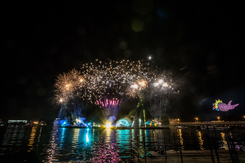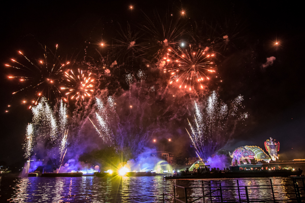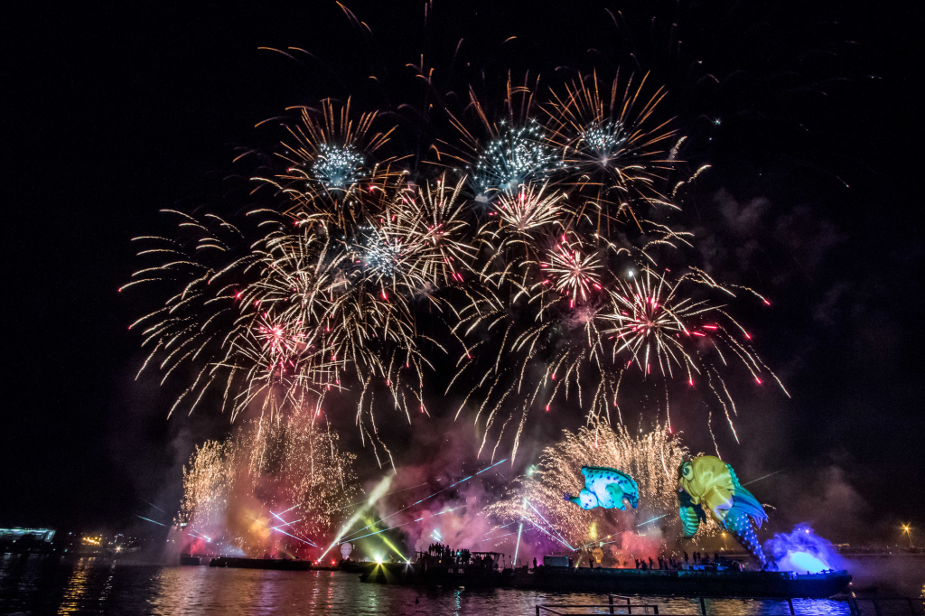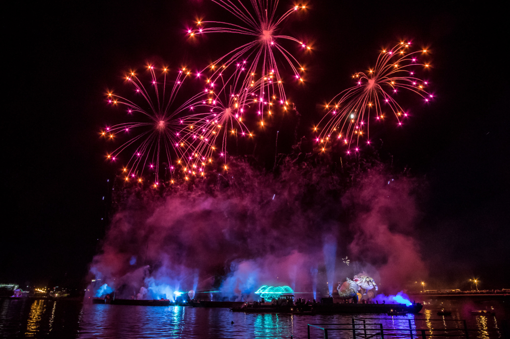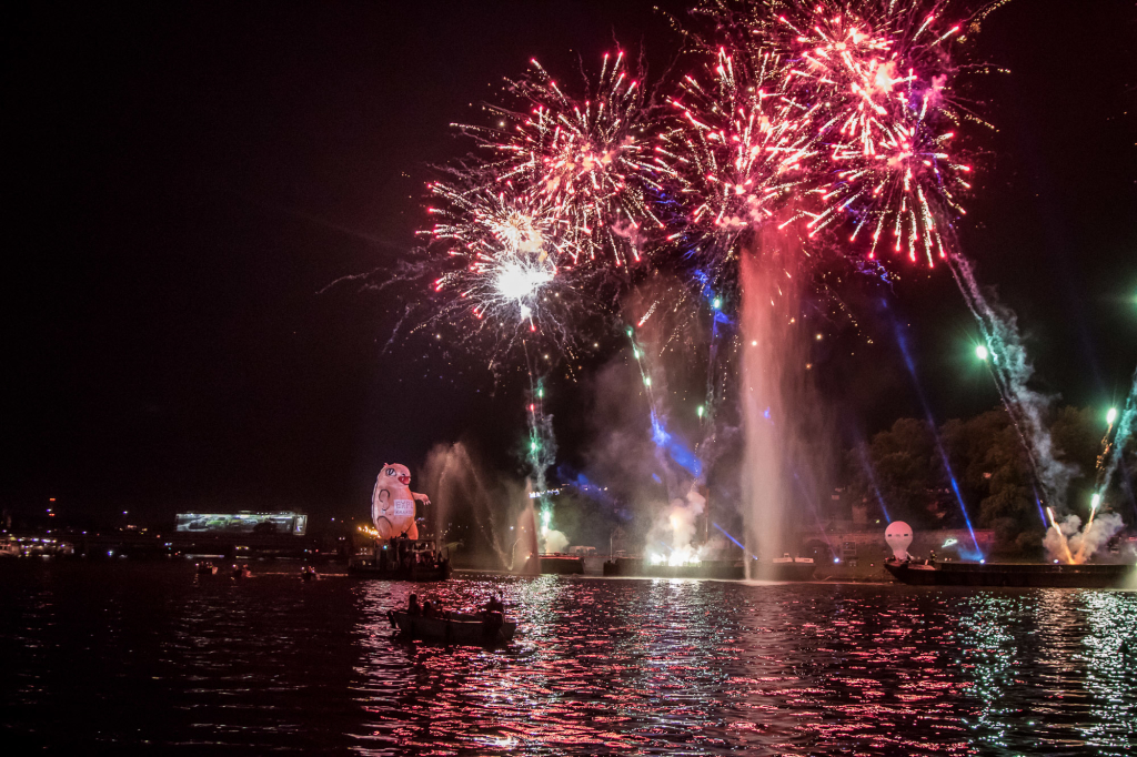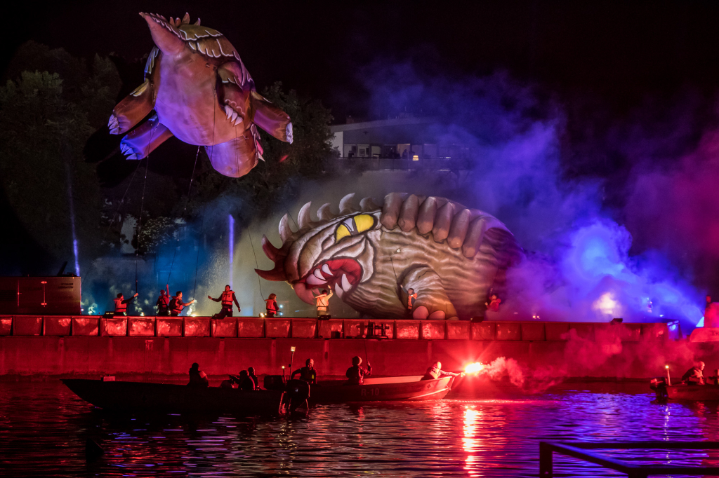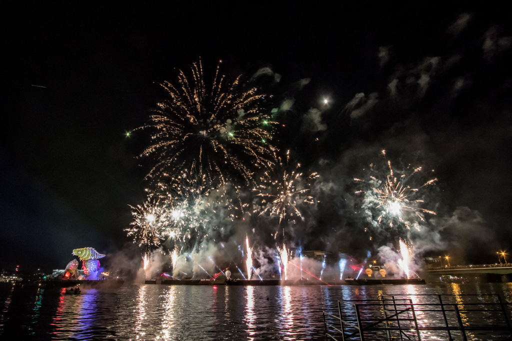 W sobotę o godz. 22 przy Zakolu Wisły pod Wawelem odbyło się niezapomniane widowisko z wykorzystaniem efektów pirotechnicznych, zaskakującej oprawy świetlnej i laserowej oraz gigantycznych kurtyn wodnych, a także pięknej muzyki. Największą atrakcją były ogromne latające smoki, animowane na barkach i statkach przez aktorów Teatru Groteska. Z głośników popłynęła muzyka m.in. Maurice’a Ravela, Gorana Bregovica czy Hansa Zimmera. Podniebną prezentację smoków poprzedził pokaz lotniarzy oraz flyboard na Wiśle.
