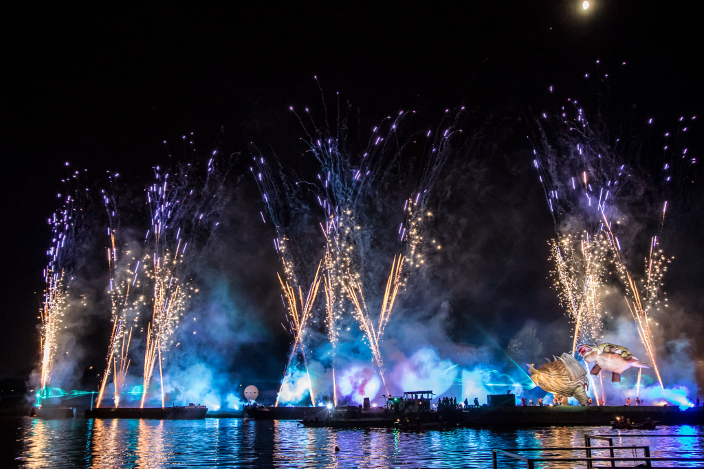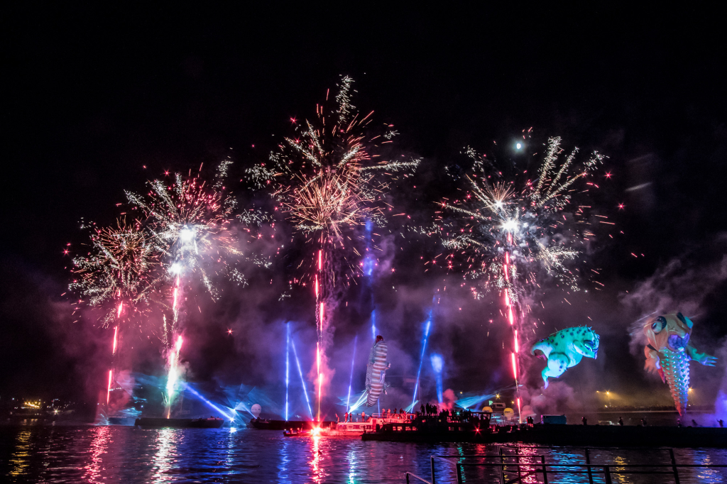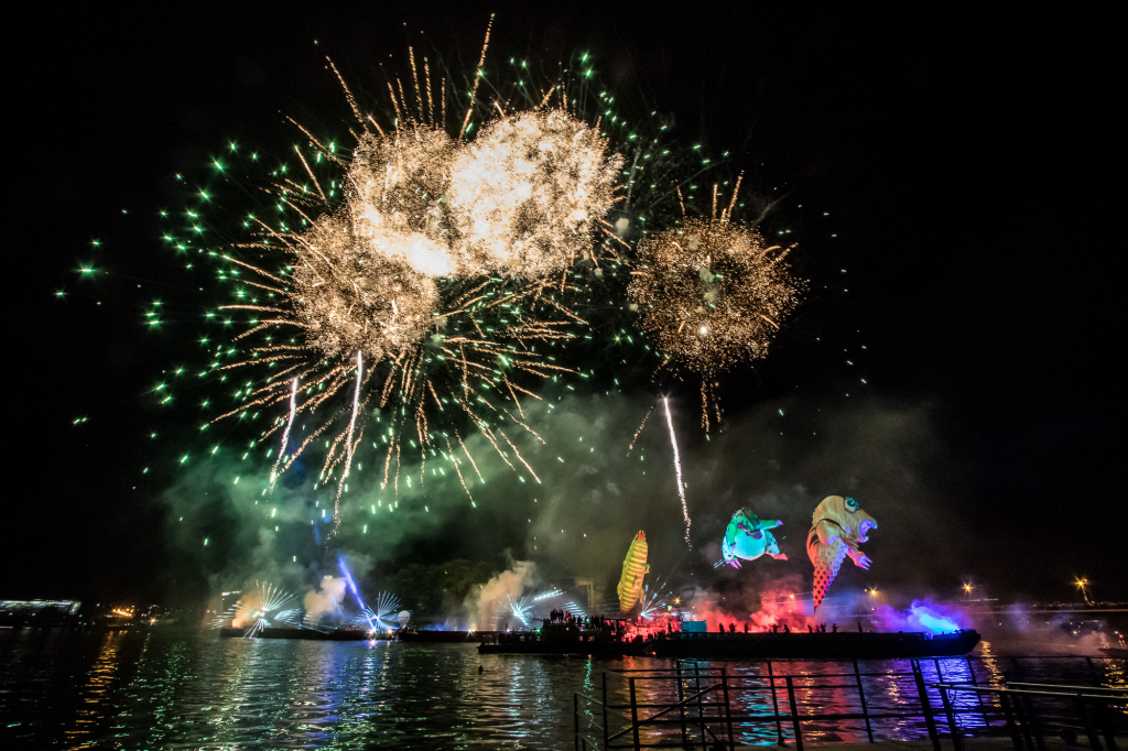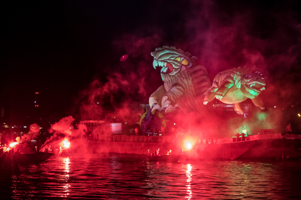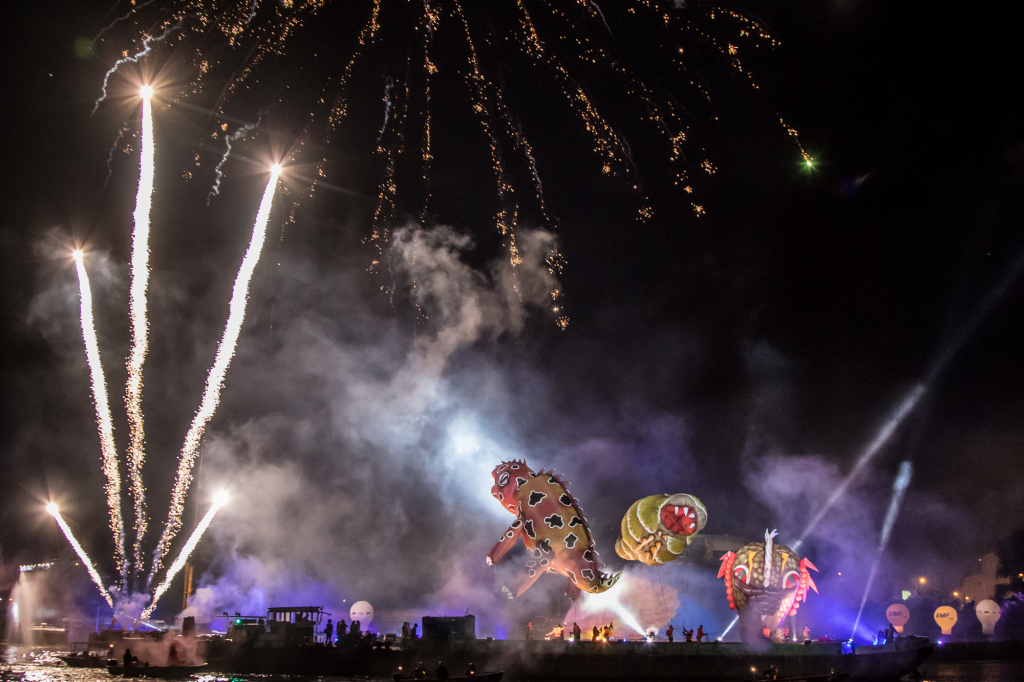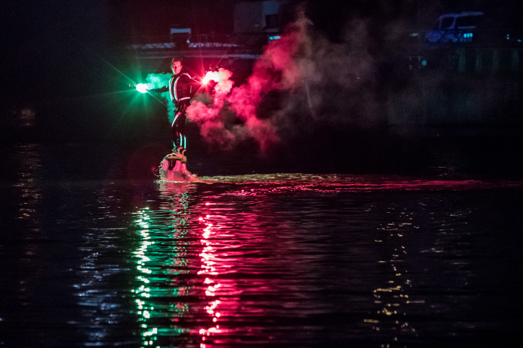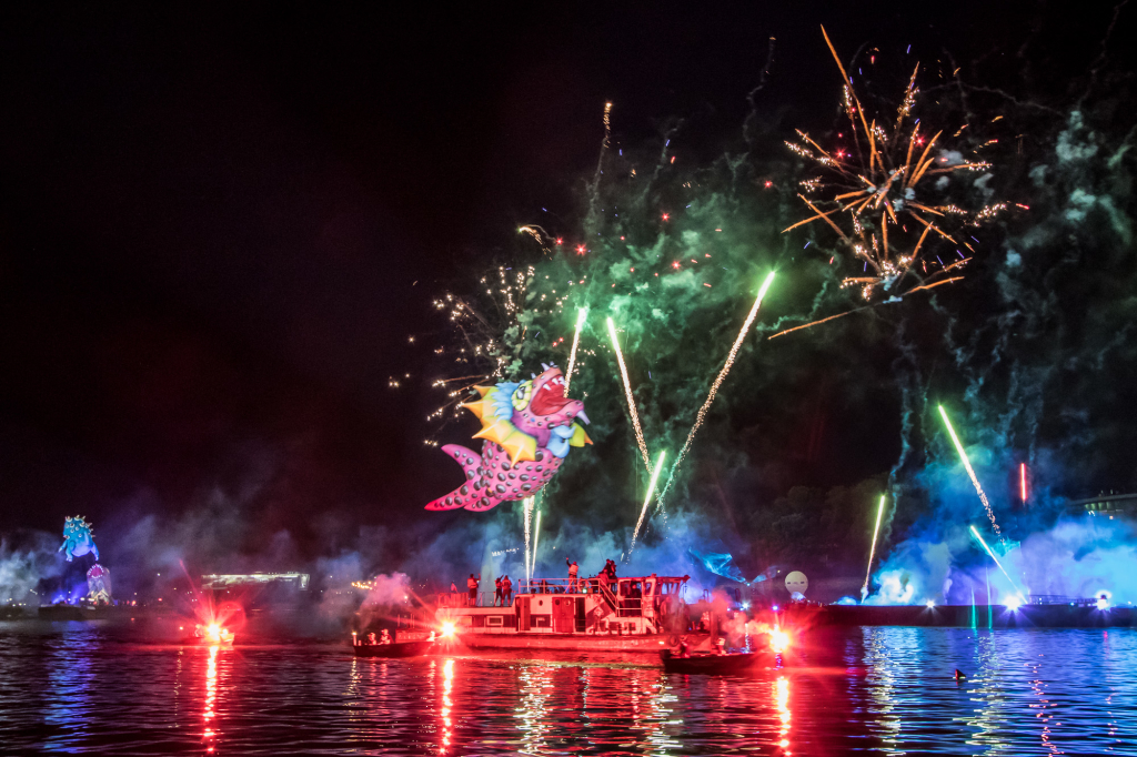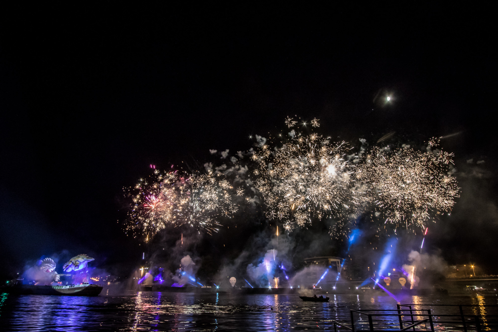 W sobotę o godz. 22 przy Zakolu Wisły pod Wawelem odbyło się niezapomniane widowisko z wykorzystaniem efektów pirotechnicznych, zaskakującej oprawy świetlnej i laserowej oraz gigantycznych kurtyn wodnych, a także pięknej muzyki. Największą atrakcją były ogromne latające smoki, animowane na barkach i statkach przez aktorów Teatru Groteska. Z głośników popłynęła muzyka m.in. Maurice’a Ravela, Gorana Bregovica czy Hansa Zimmera. Podniebną prezentację smoków poprzedził pokaz lotniarzy oraz flyboard na Wiśle.