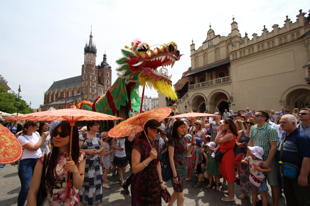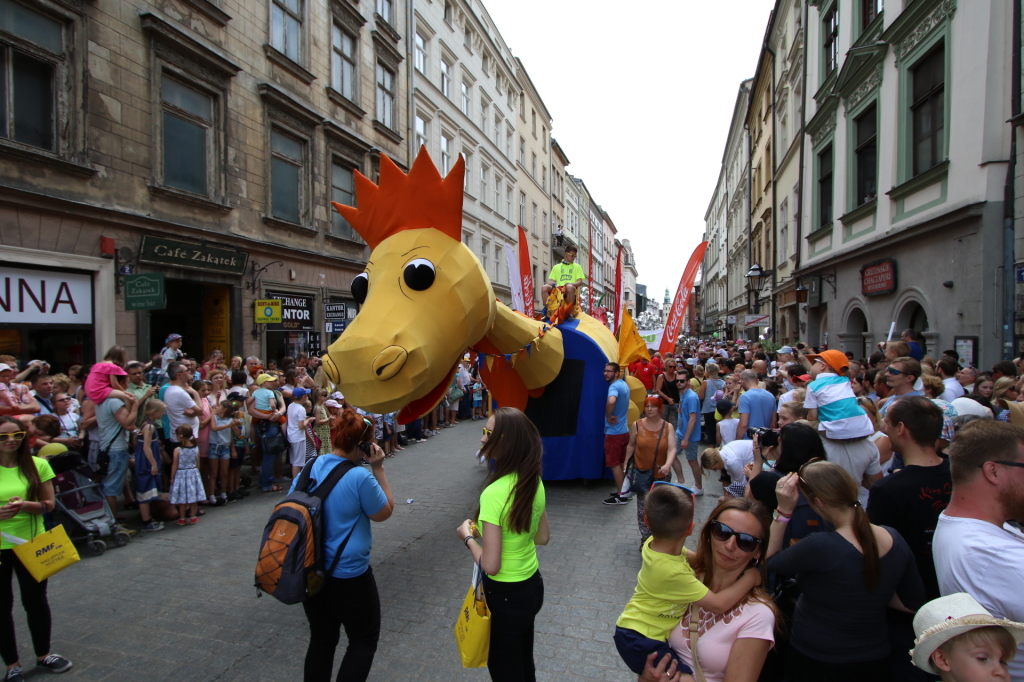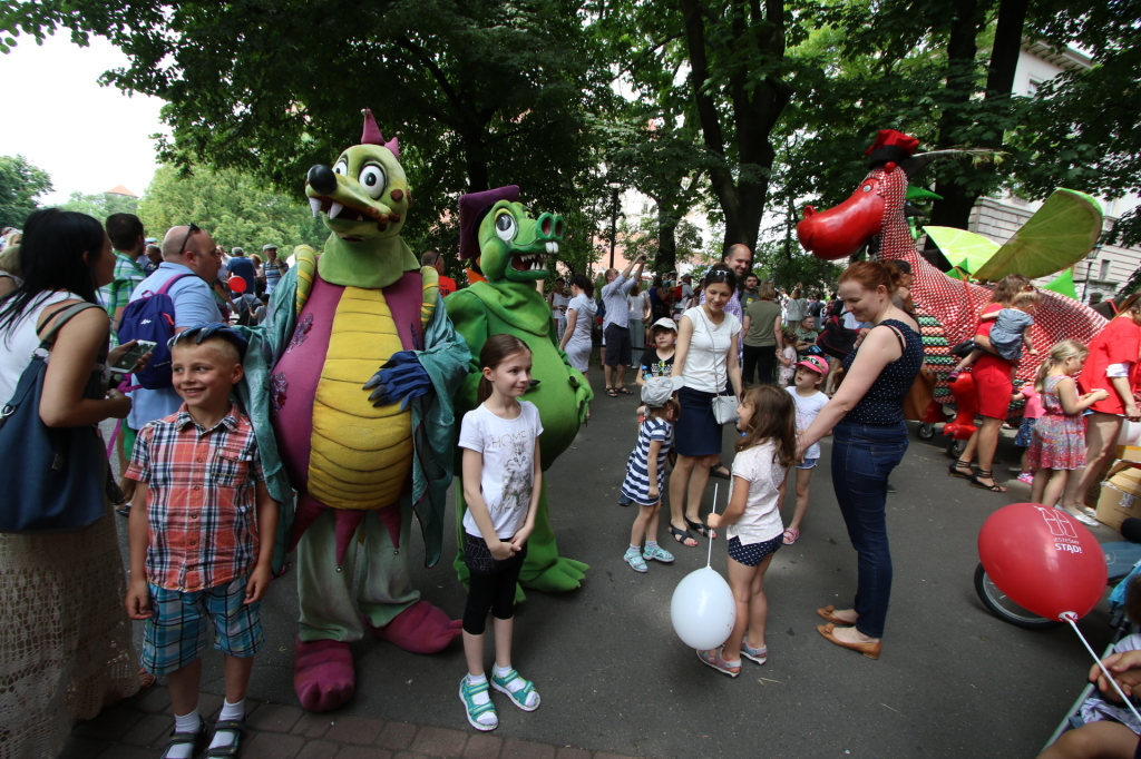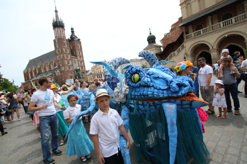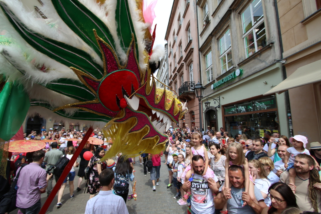 Kultowa Wielka Parada Smoków rozpoczęła się w niedzielę, 4 czerwca o godz. 12. Przeszła od ul. Grodzkiej, ulicami Starego Miasta, a swój finał miała na Rynku Głównym. Wzięło w niej udział ponad tysiąc dzieci z całej Polski. To one animowały prawie czterdzieści samodzielnie zaprojektowanych i wykonanych smoków, które walczyły o tytuł Najpiękniejszego Smoka Parady. W tym roku hasło do stworzenia smoczych postaci brzmiło: „Smoki Morza Śródziemnego”. Uczestnicy mogli puścić wodze fantazji, inspirując się kulturą, historią, plastyką i ornamentyką np. Cypru, Egiptu, Grecji, Tunezji, Turcji czy Włoch.