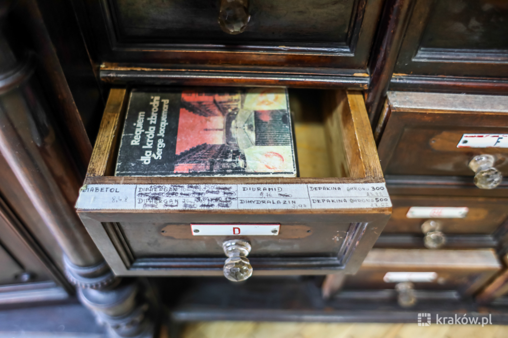 W lokalu zachowały się elementy zabytkowego wystroju i wyposażenia po „Aptece Pod Aniołem Stróżem”, działającej w tym miejscu nieprzerwanie od początku istnienia budynku, tj. od ok. 1890 roku.