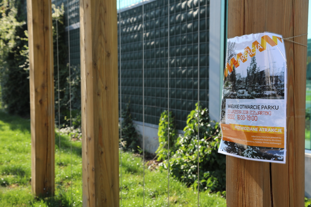 Koncepcja przeznaczenia tego terenu na park linearny powstała podczas spotkań konsultacyjnych z mieszkańcami. Posadzono tam osiemnaście dużych platanów oraz prawie trzy tysiące sztuk innych roślin, takich jak jeżówki, rudbekie i zachyłki trójskrzydłowe, a także około sześć tysięcy cebul narcyzów. Zarząd Zieleni Miejskiej zajął się również montażem małej architektury oraz huśtawek.