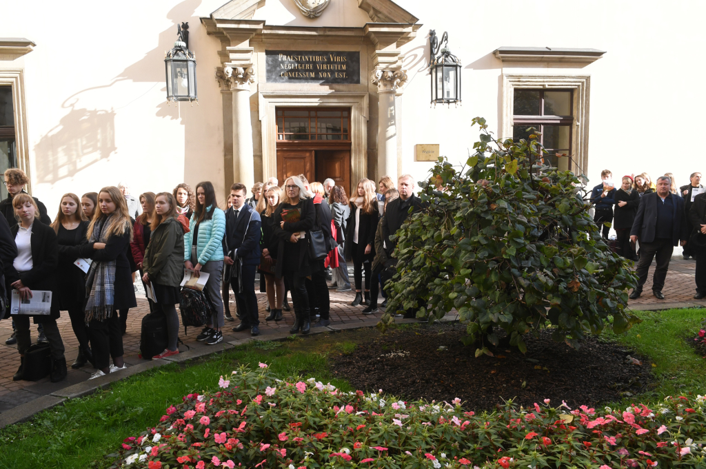 W odsłonięciu tablicy oprócz prezydenta miasta Krakowa Jacka Majchrowskiego wzięli udział: przewodniczący Rady Miasta Krakowa Bogusław Kośmider, dyrektor Muzeum Historycznego Miasta Krakowa Michał Niezabitowski oraz sekretarz stanu w Kancelarii Prezesa Rady Ministrów Kazimierz Barczyk.