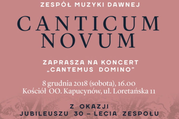 Krakowskie Forum Kultury zaprasza na uroczysty koncert jubileuszowy z okazji 30-lecia zespołu Canticum Novum, który odbędzie się w sobotę, 8 grudnia, o godzinie 16:00 w kościele oo. kapucynów przy ulicy Loretańskiej 11.