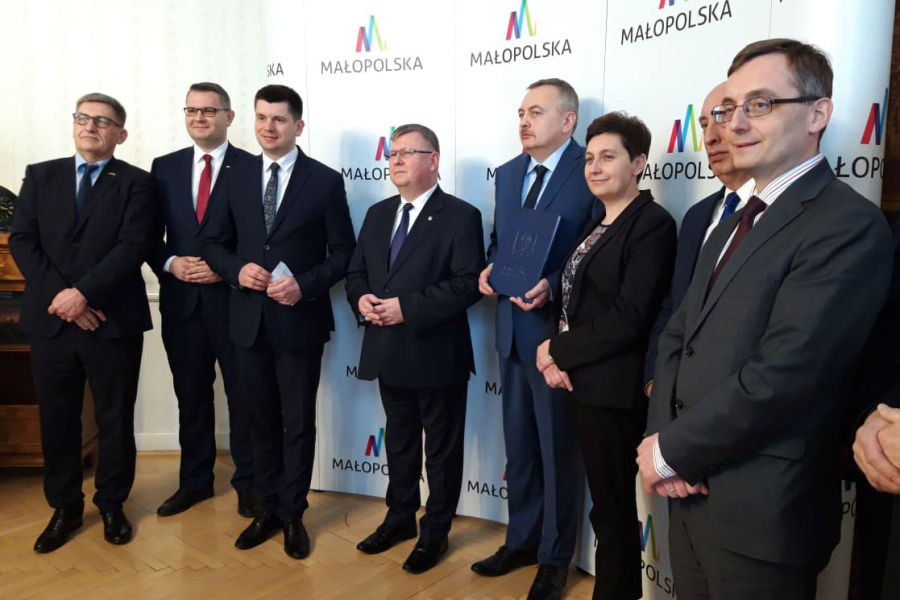 W środę, 20 lutego, marszałek województwa Witold Kozłowski, wicemarszałek Łukasz Smółka, Janusz Moskwa – dyrektor Wydziału Strategii, Planowania i Monitorowania Inwestycji UMK, burmistrz Myślenic Jarosław Szlachetka oraz przedstawiciele innych gmin zaangażowanych w realizację istotnej dla mieszkańców regionu inwestycji przekazali umowę na opracowanie koncepcji z elementami studium wykonalności dla nowej linii kolejowej Kraków – Świątniki Górne – Siepraw – Myślenice. Opracowanie, którego podejmie się firma International Management Services Sp. z o.o., ma określić możliwości stworzenia efektywnego i nowoczesnego systemu transportu zbiorowego, który usprawni podróżowanie po obszarze gmin leżących na trasie Kraków – Myślenice.