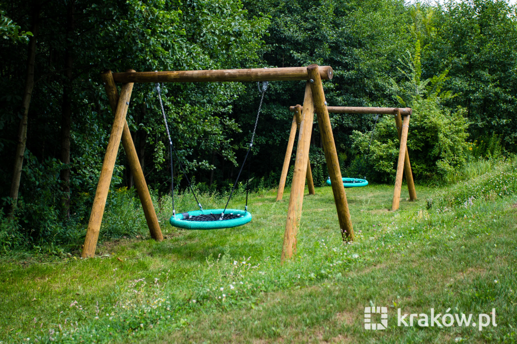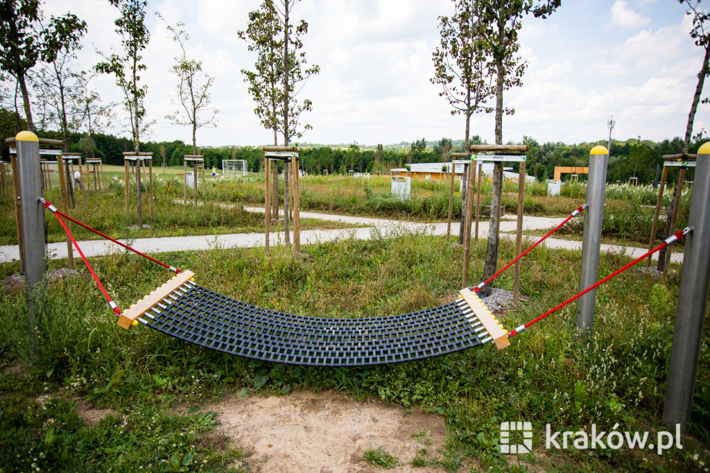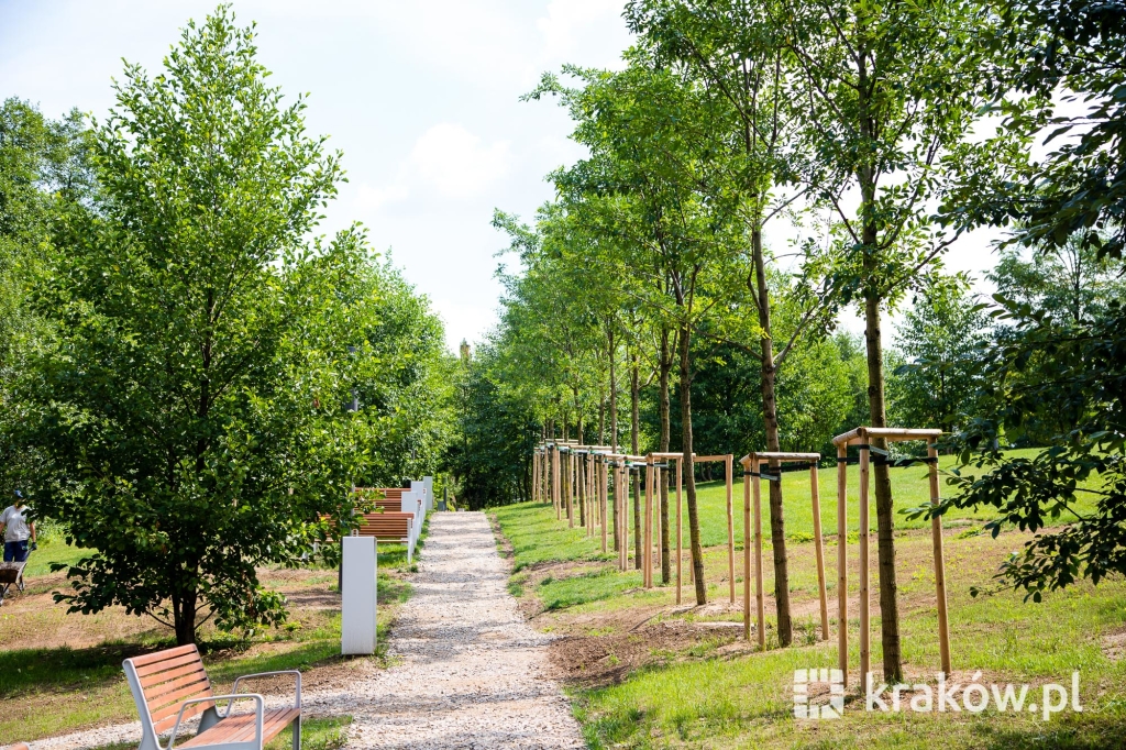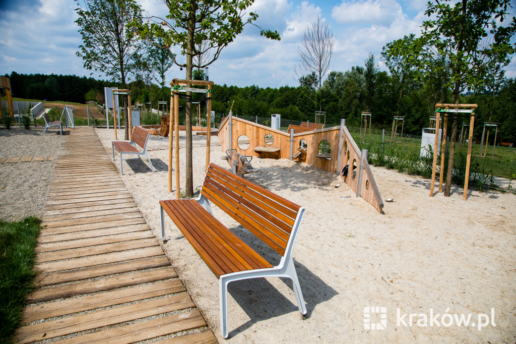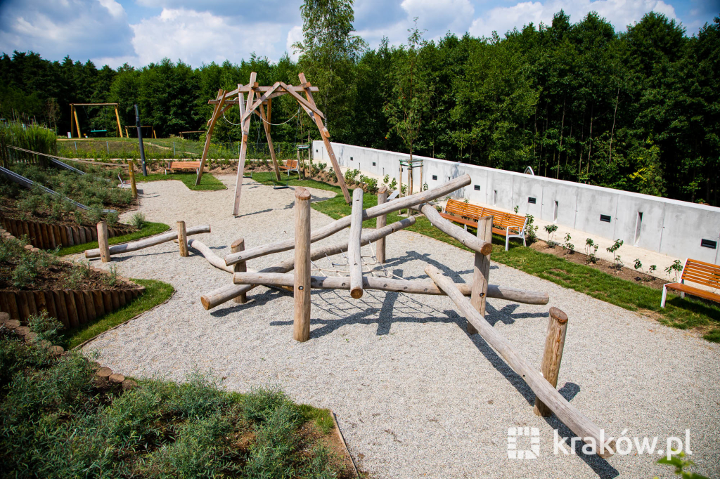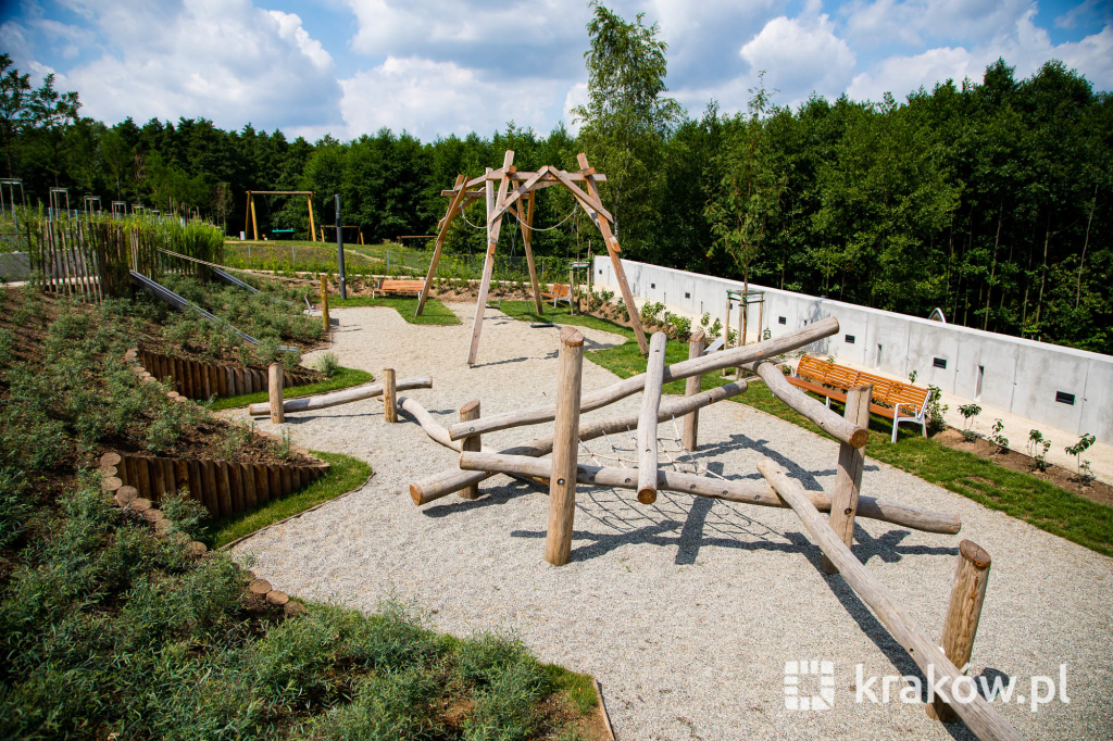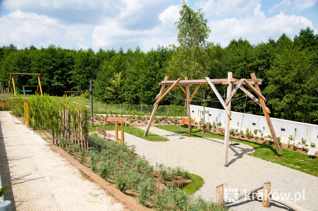 Znajduje się też wielofunkcyjny, 200-metrowy pawilon, który pełnił będzie funkcję kawiarni oraz miejsca spotkań mieszkańców. Na dachu pawilonu znajduje się taras, z którego można obserwować park. W parku zamontowanych zostało około 100 ławek, 135 koszy na śmieci, 20 hamaków, 20 leżaków oraz poidełko. W części leśnej parku powstała ścieżka spacerowa pomiędzy drzewami, przeznaczona dla biegaczy.