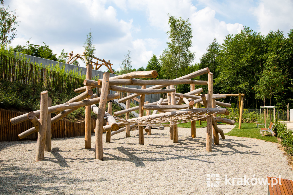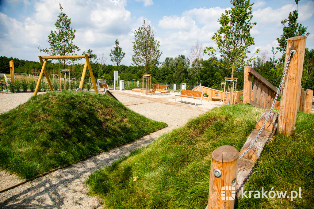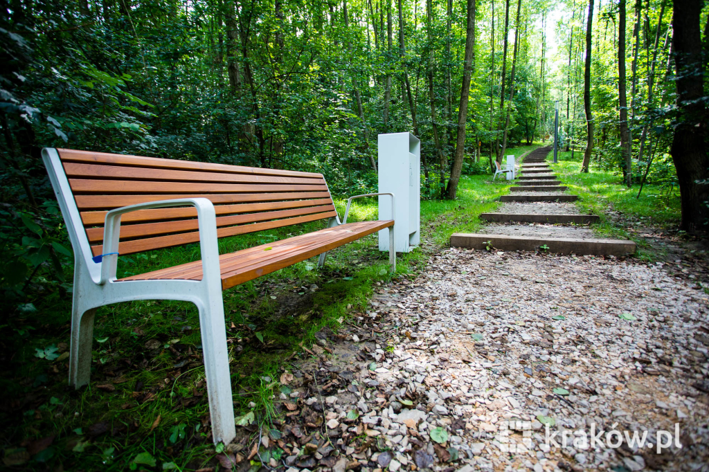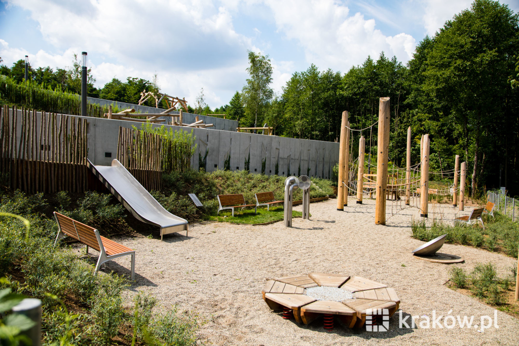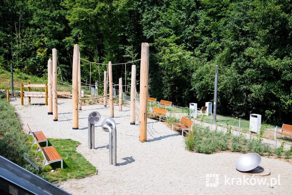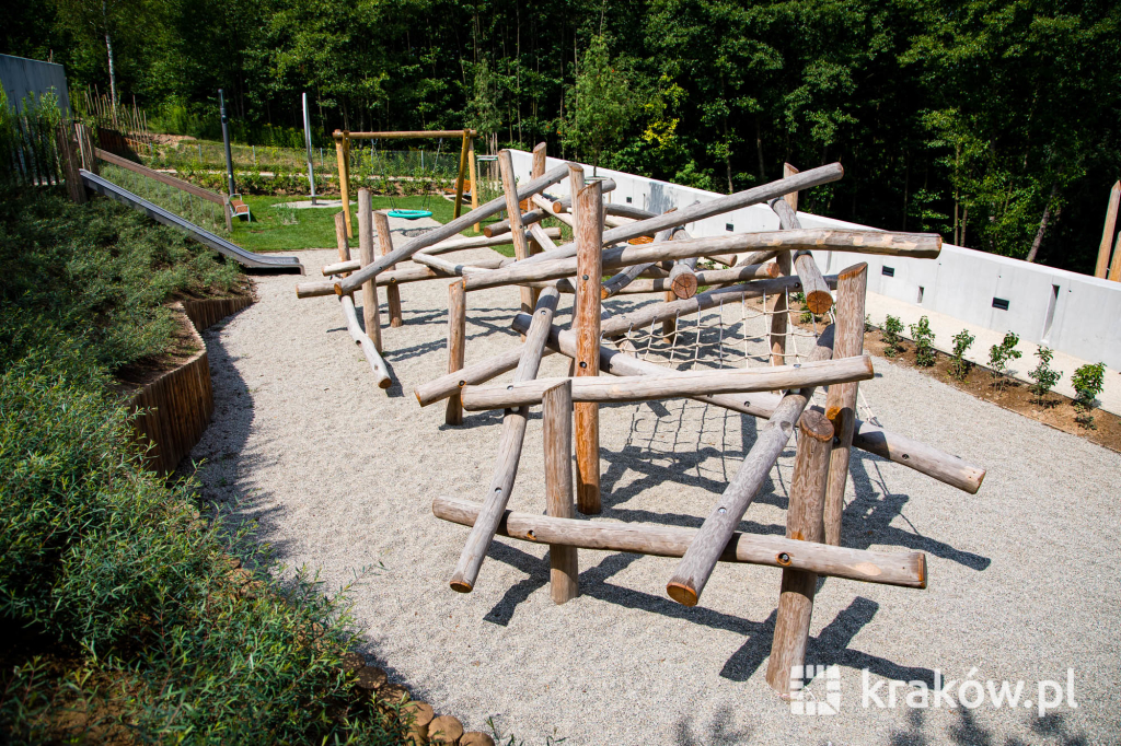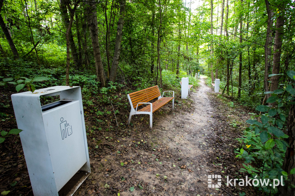 Znajduje się też wielofunkcyjny, 200-metrowy pawilon, który pełnił będzie funkcję kawiarni oraz miejsca spotkań mieszkańców. Na dachu pawilonu znajduje się taras, z którego można obserwować park. W parku zamontowanych zostało około 100 ławek, 135 koszy na śmieci, 20 hamaków, 20 leżaków oraz poidełko. W części leśnej parku powstała ścieżka spacerowa pomiędzy drzewami, przeznaczona dla biegaczy.