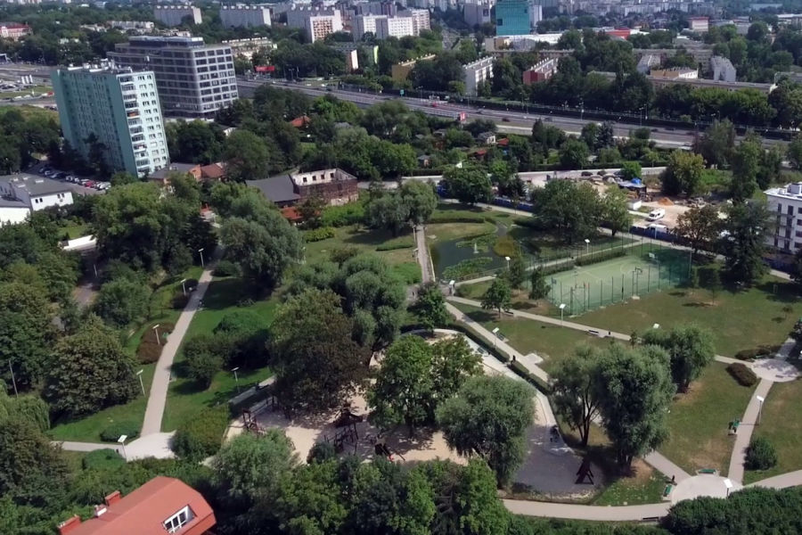 W parku można spotkać wróble, sikorki, kaczki krzyżówki.