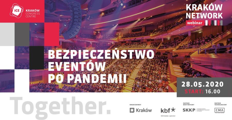 Po ostatnim bardzo udanym webinarze Kraków Network organizatorzy zdecydowali się kontynuować temat bezpieczeństwa eventów w nowej rzeczywistości. Już 28 maja odbędzie się druga edycja konferencji online Kraków Network Together. Tematem dyskusji będzie dokument stworzony przez grupę projektową, który nosi tytuł „Bezpieczeństwo eventów po pandemii”.