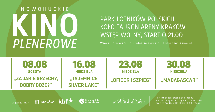 Nowohuckie Kino Plenerowe jest wydarzeniem towarzyszącym kampanii społeczno-informacyjnej Bądź Turystą w Swoim Mieście. Projekt sfinansowano ze środków Budżetu Obywatelskiego Miasta Krakowa oraz ze środków Dzielnicy XIV Czyżyny.