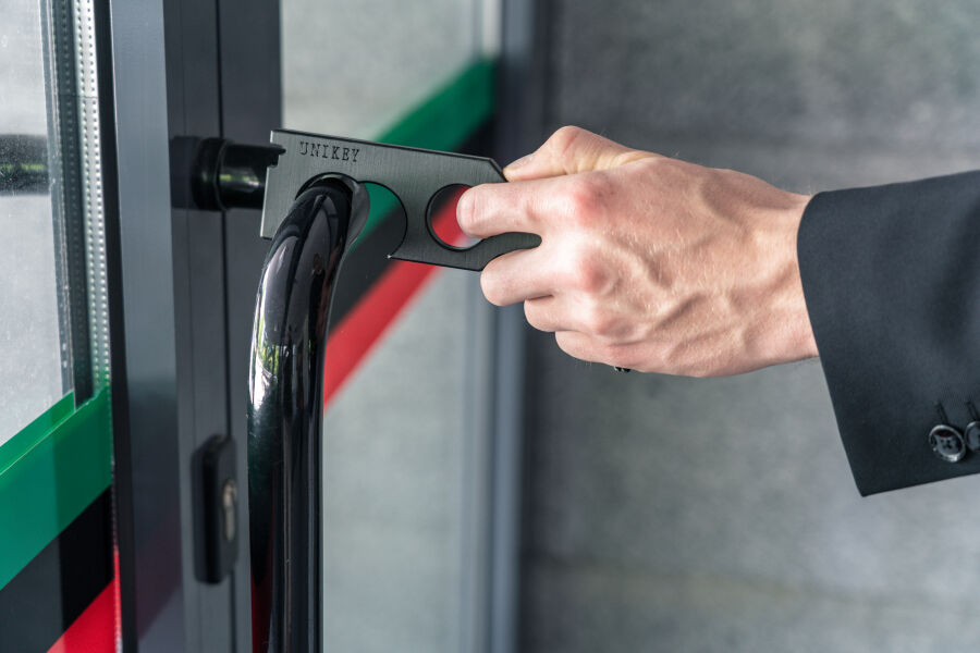 UNIKEY to narzędzie do bezdotykowego otwierania drzwi oraz trzymania poręczy i uchwytów w środkach komunikacji miejskiej. Dzięki przyrządowi można zmniejszyć ryzyko kontaktu z klamkami czy powierzchniami często dotykanymi w miejscach publicznych, a tym samym ograniczyć rozprzestrzenianie się bakterii i wirusów. Innowacyjne rozwiązanie powstało w czasie pandemii koronawirusa.