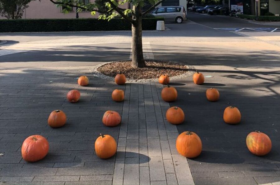 Kompozycje pt. „Razem, a jednak osobno. Keep a safe distance.” przygotowała Ewa Czekaj-Kamińska architekt krajobrazu z Działu Obsługi Uczelni. Celem instalacji było nie tylko upiększenie kampusu uczelni na jesień, ale także przypominanie studentom oraz pracownikom o stosowaniu się do środków ostrożności chroniących przed zakażeniem koronawirusem. Dynie zostały rozstawione w kluczowych miejscach kampusu: w pobliżu budynku głównego AGH, przed jednym z wydziałów oraz w okolicach lokomotywy AGH.
