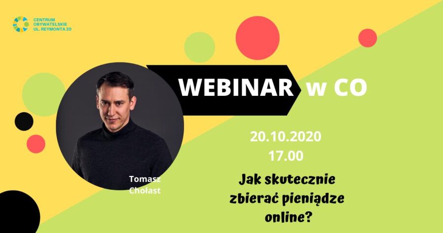 Centrum Obywatelskie przy ul. Reymonta 20 przeszło na tryb pracy zdalnej. Wydarzenia, szkolenia i doradztwo realizowane są online. Dziś odbędzie się webinar: Jak skutecznie zbierać pieniądze online?