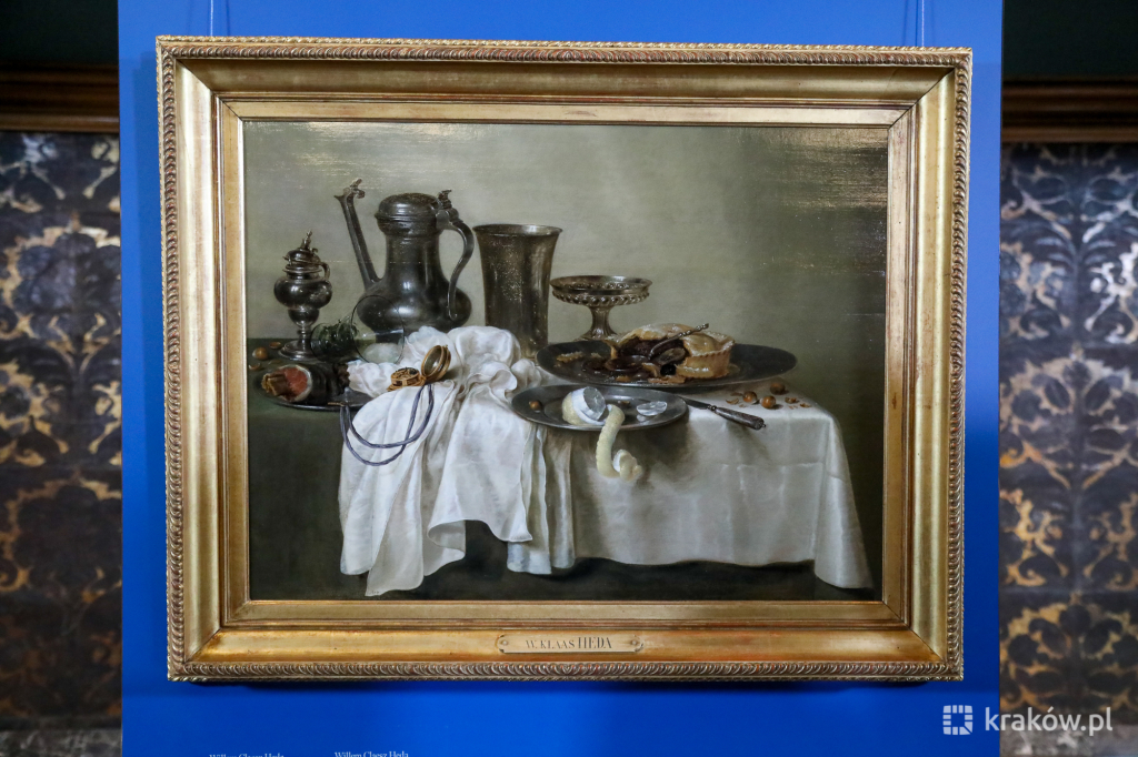 „Martwa natura” Willema Claesza Hedy (1594–1680), utrzymana w tonacji szarozielonej, przedstawia kompozycję kosztownych naczyń srebrnych i szklanych. Działający w Haarlemie artysta specjalizował się w malowaniu tzw. śniadań. Obrazy te służyły nie tylko dekoracji jadalni, ale symbolizowały też przemijanie, nietrwałość rzeczy, ulotność bogactwa. Kompozycja powstała w okresie, na który przypada większość najlepszych prac Hedy – są to lata 30. i 40. XVII w. Malarz zwykle sygnował i datował swoje obrazy – wiadomo, że w 1637 powstało dziewięć znanych dziś martwych natur, które znajdują się w renomowanych kolekcjach na całym świecie.