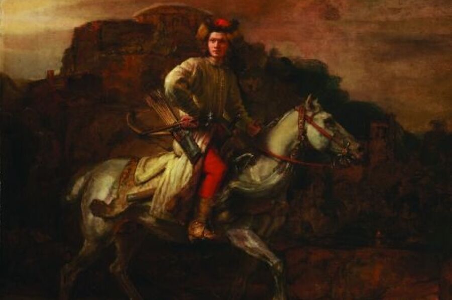 Obraz zatytułowany „Jeździec polski” to wyjątkowe dzieło w całym dorobku artystycznym Rembrandta, który nie malował portretów konnych (znany jest jeszcze tylko jeden: wizerunek Frederika Rihela w zbiorach National Gallery w Londynie). Identyfikacja Jeźdźca polskiego pozostaje wciąż zagadką. Czy malarz przedstawił wizerunek konkretnej postaci? Czy chciał ukazać alegoryczną postać militis christiani – rycerza chrześcijańskiego? Czy urzekła go jedynie orientalna malowniczość stroju i oryginalność uzbrojenia, które obserwował u odwiedzających Amsterdam przybyszów z terenów Rzeczypospolitej?