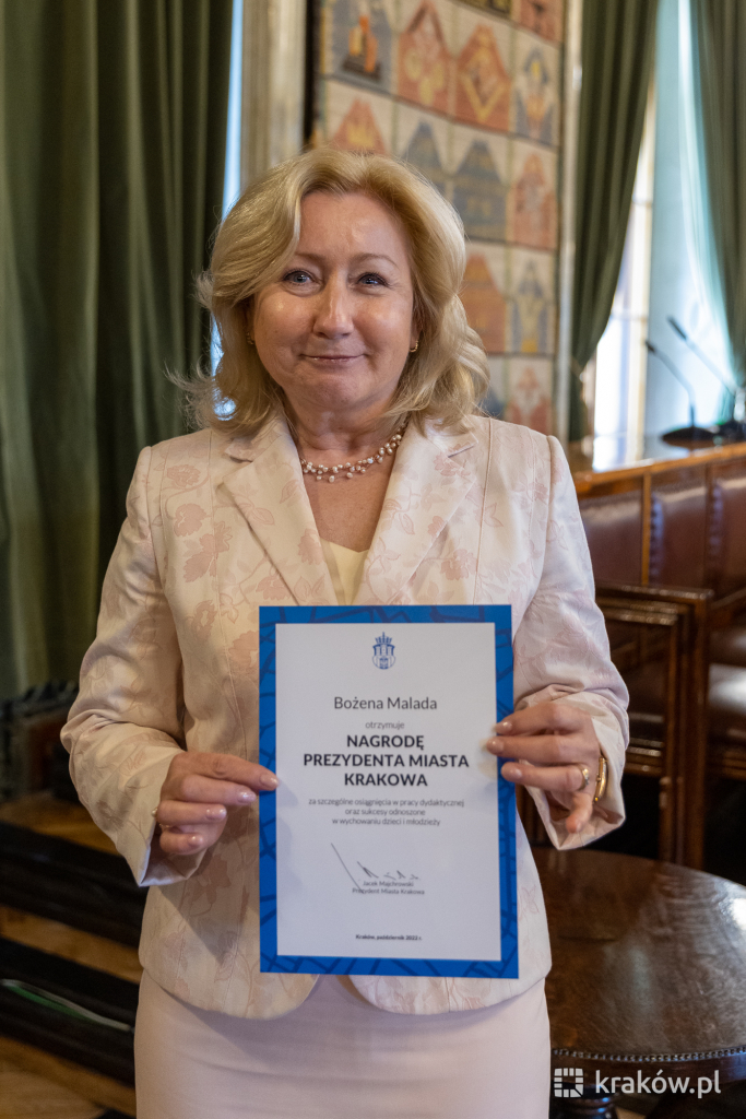 W tym roku Nagrody Prezydenta Miasta Krakowa dla nauczycieli i dyrektorów szkół za osiągnięcia w pracy dydaktycznej, wychowawczej i opiekuńczej, otrzymało 88 osób sprawujących funkcje kierownicze w oświacie oraz 150 nauczycieli zatrudnionych w samorządowych przedszkolach, szkołach podstawowych i ponadpodstawowych oraz placówkach.