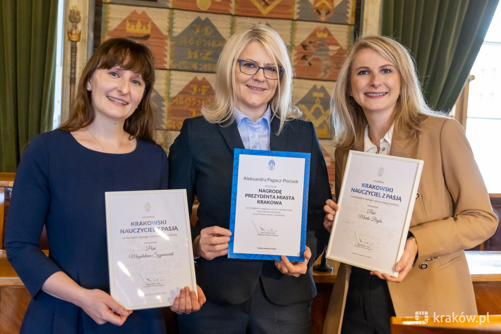 Tradycyjnie, z okazji Dnia Nauczyciela, w Sali Obrad Rady Miasta Krakowa wręczone zostały nagrody za osiągnięcia w pracy dydaktycznej, wychowawczej i opiekuńczej oraz certyfikaty dla laureatów konkursu „Nauczyciel z pasją”.