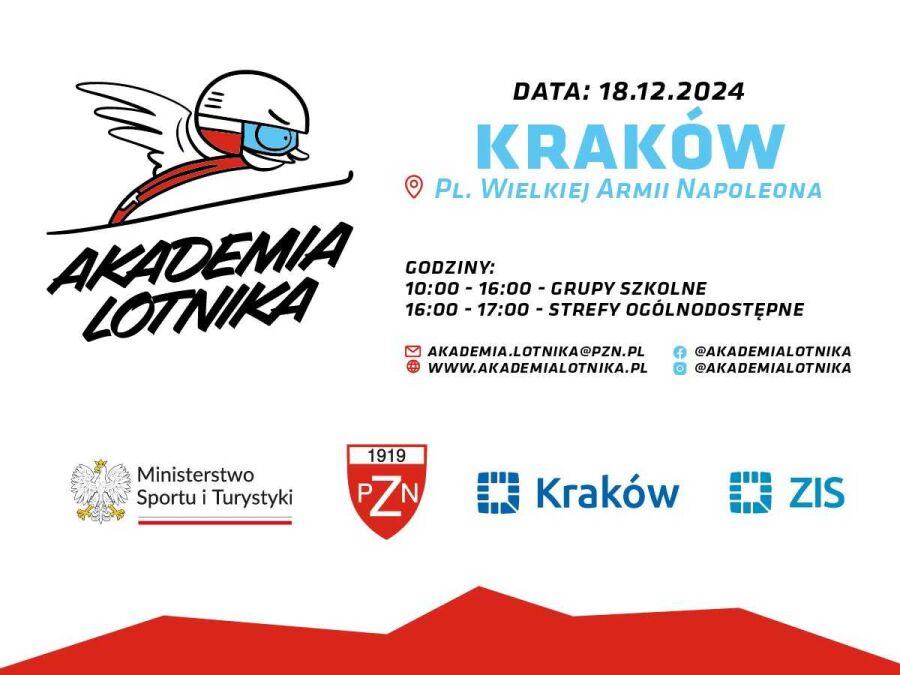 Już dziś, 18 grudnia w Krakowie zostanie zorganizowana finałowa odsłona Akademii Lotnika – projektu Polskiego Związku Narciarskiego, pod patronatem Ministerstwa Sportu i Turystyki. Wydarzenie promujące skoki narciarskie – z główną atrakcją w postaci mobilnej skoczni – odbędzie się na placu Wielkiej Armii Napoleona u stóp Wawelu.